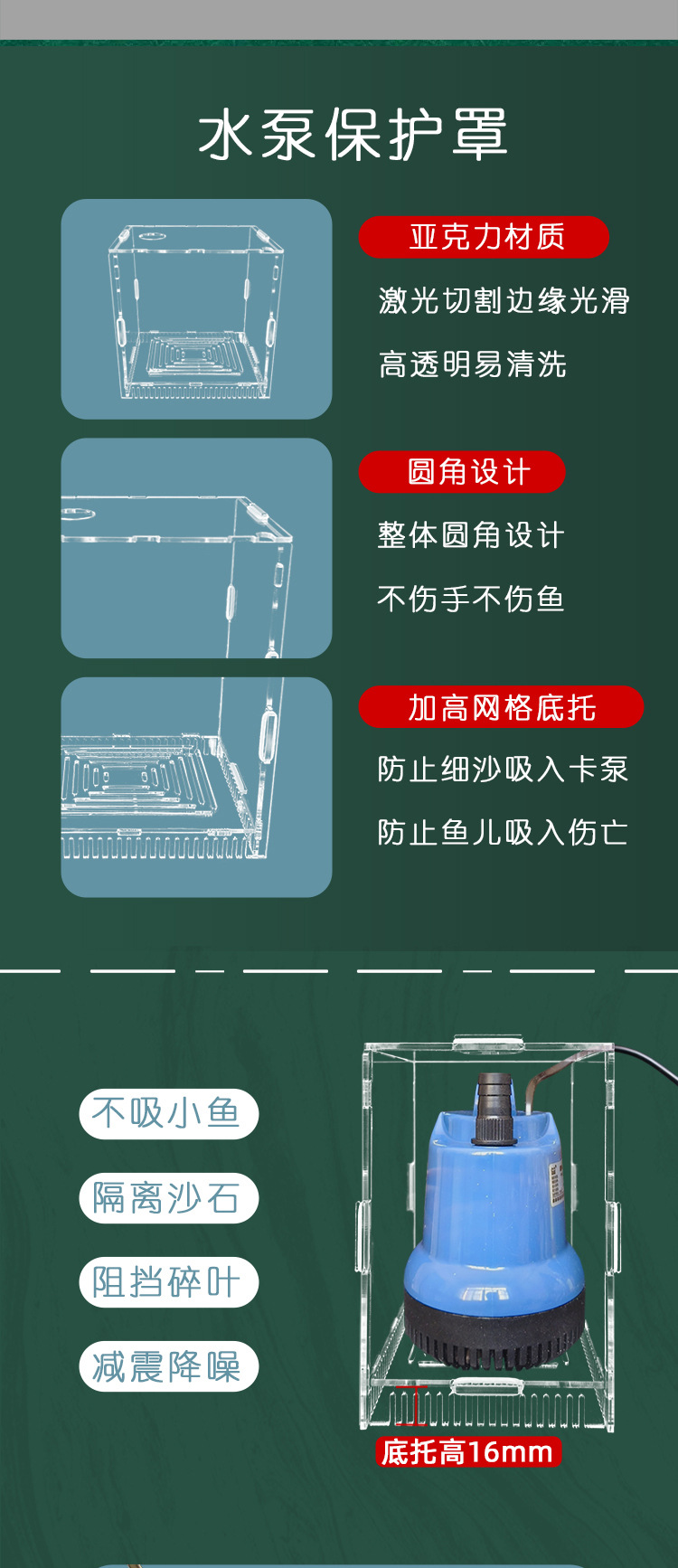 아크릴 워터 펌프 흡입 방지 물고기 커버 어항 필터 필터 흡입 방지 작은 물고기 보호 커버 잠수정 펌프 모래 유지 판 필터 상자