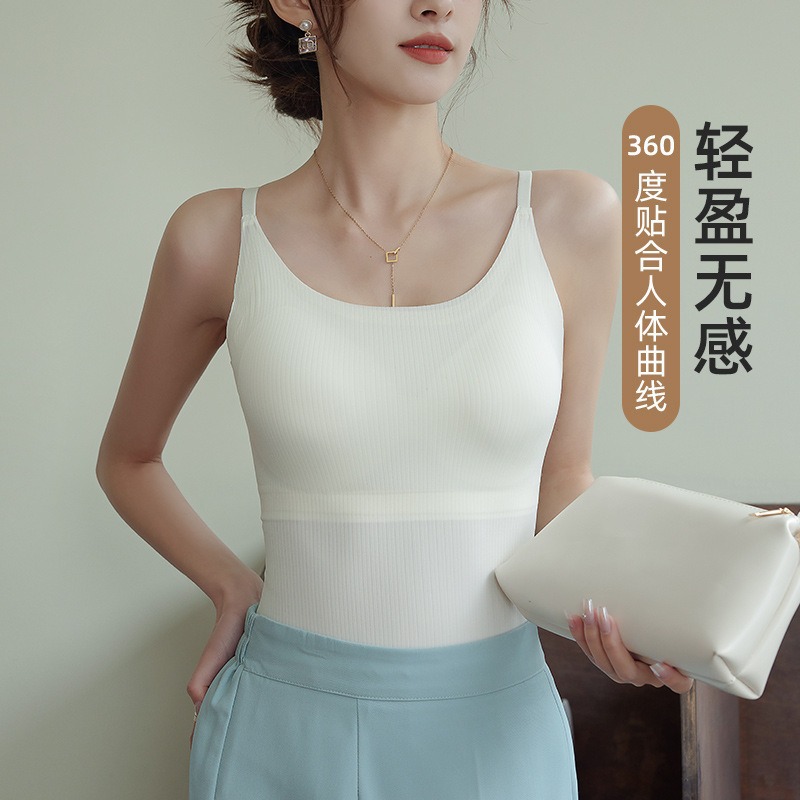 6666 Fen 라이브 인기 캐미솔 올인원 고정 컵 푸시 업 처짐 방지 얼음 실크 여성용 원활한 속옷스토어 가기
