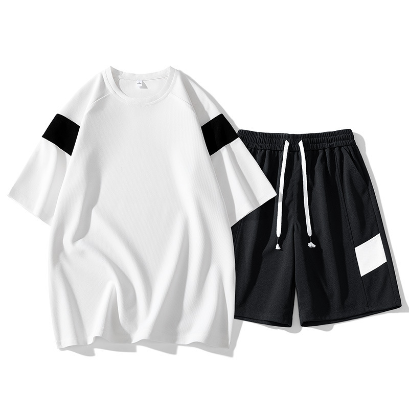 캐주얼 세트 남자 2024 여름 느슨한 커플 티셔츠 크러싱 반바지 스포츠 투피스 세트 남성용스토어 가기