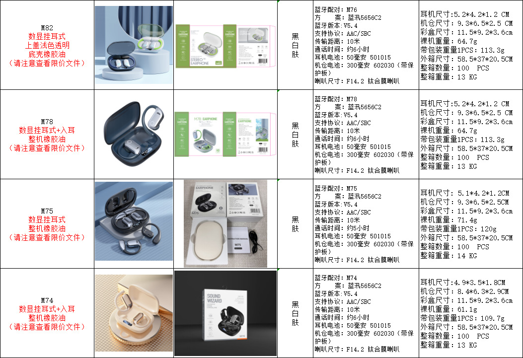 OWS 귀고리 M75 실행 낙하 방지 블루투스 헤드셋 5.4 헤드폰 Huaqiangbei 소음 감소 공장 직접 판매스토어 가기