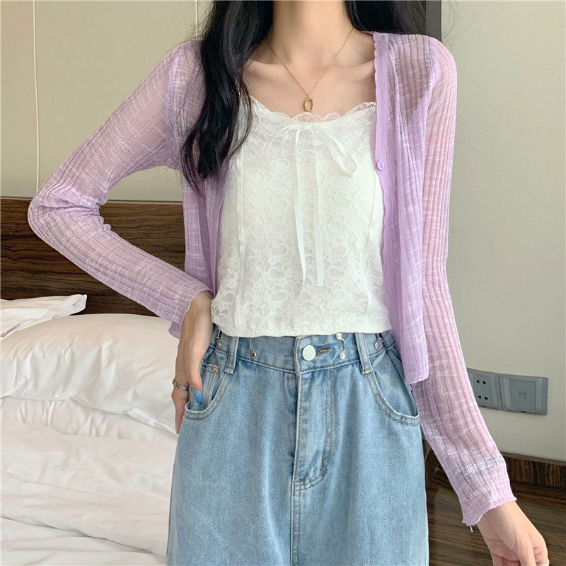 여름 신상 캐주얼 아이스 실크 니트 가디건 여성용 짧은 긴팔 자외선 차단 의류 여성용 숄 탑