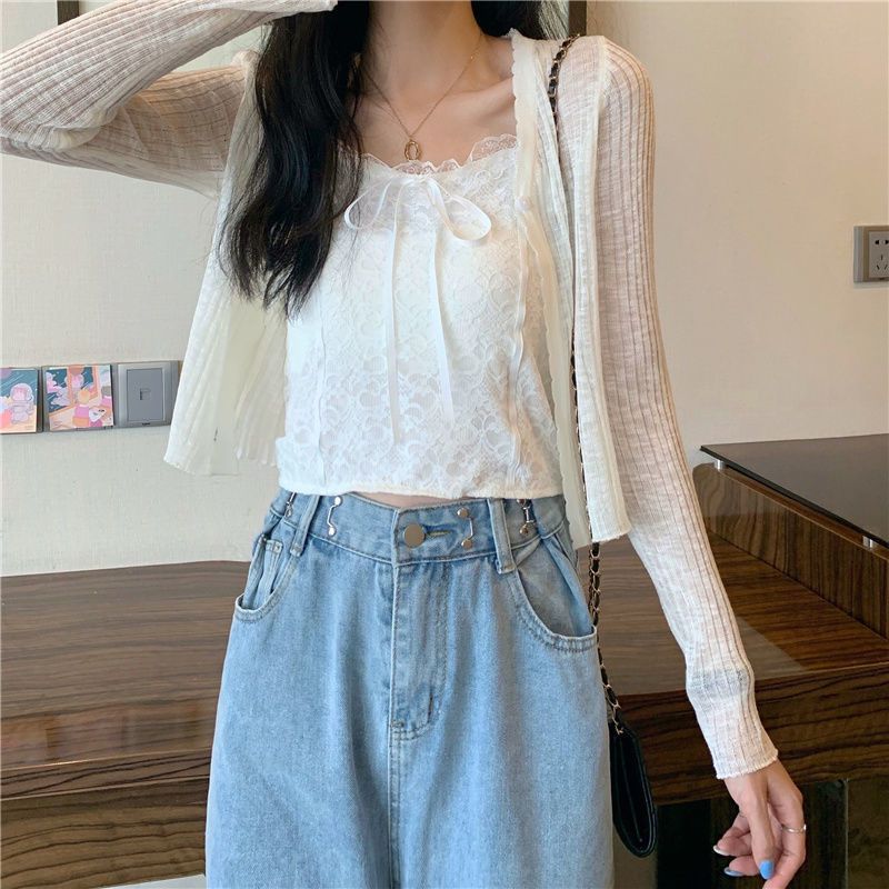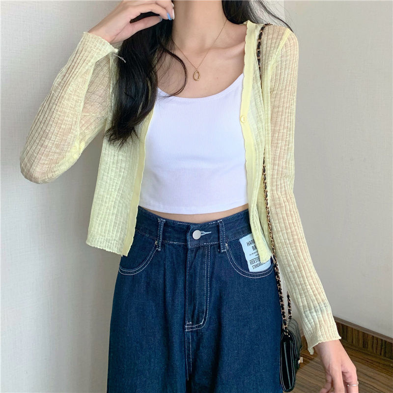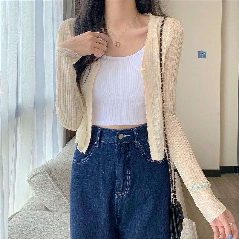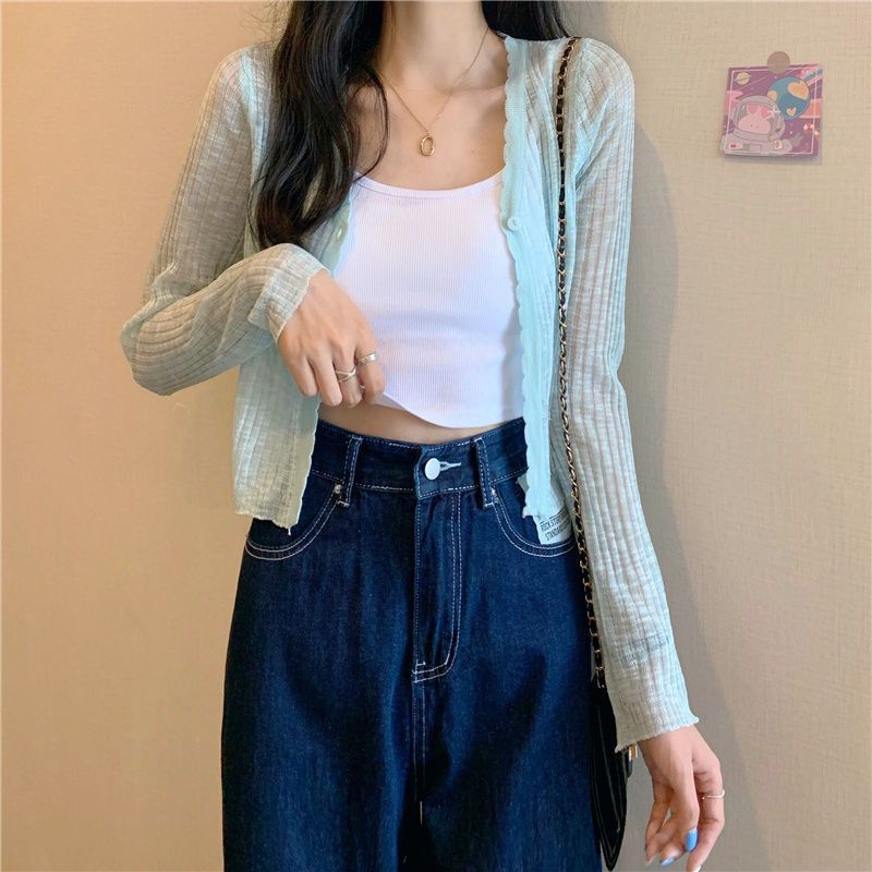 여름 신상 캐주얼 아이스 실크 니트 가디건 여성용 짧은 긴팔 자외선 차단 의류 여성용 숄 탑스토어 가기