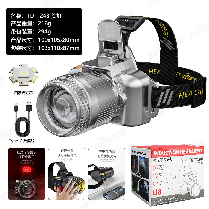 국경 간 야외 캠핑용 강력광 센서 장거리 USB 충전식 장시간 사용 가능한 순찰 탐험 야간 낚시 작업용 헤드라이트스토어 가기