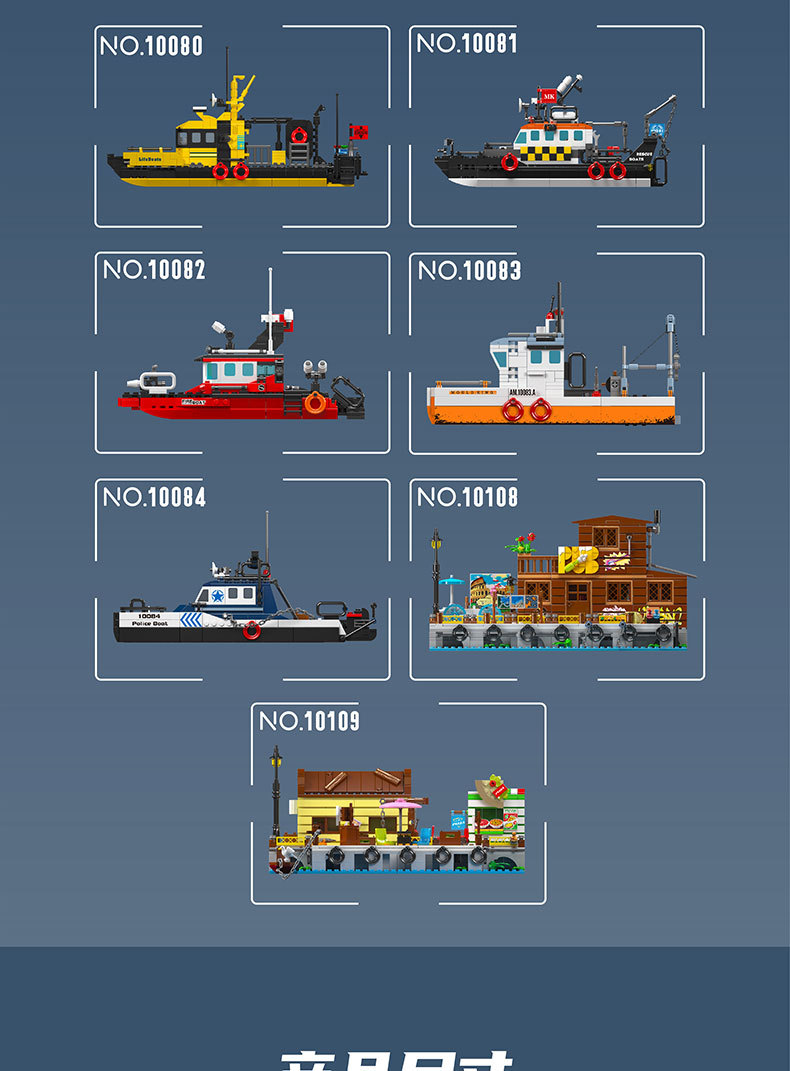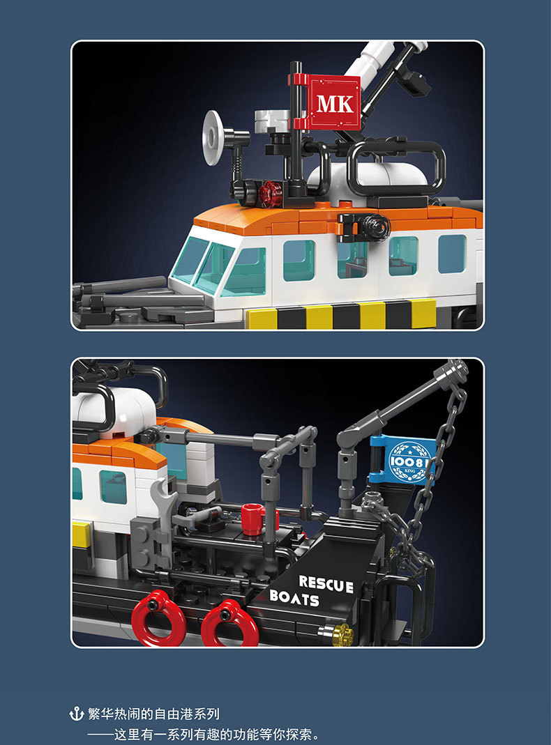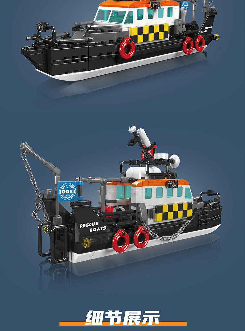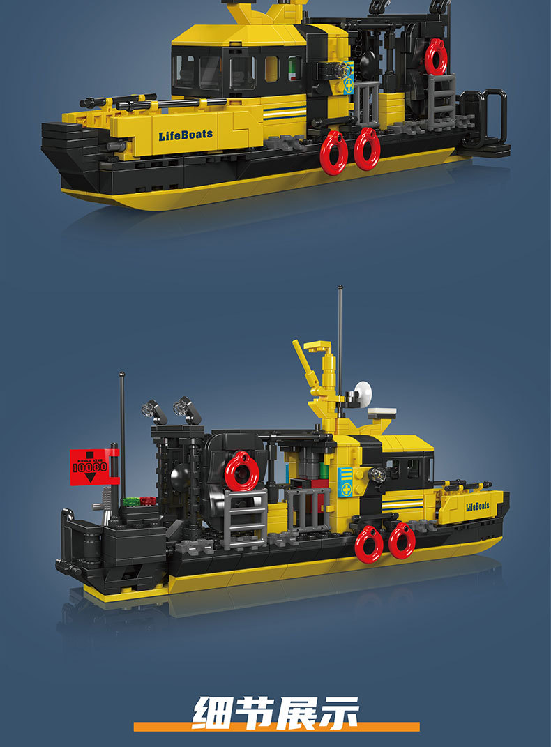 Yuxing 10080-10084 다기능 구명정 구조 보트 성인과 어린이 조립 모델 퍼즐 빌딩 블록스토어 가기