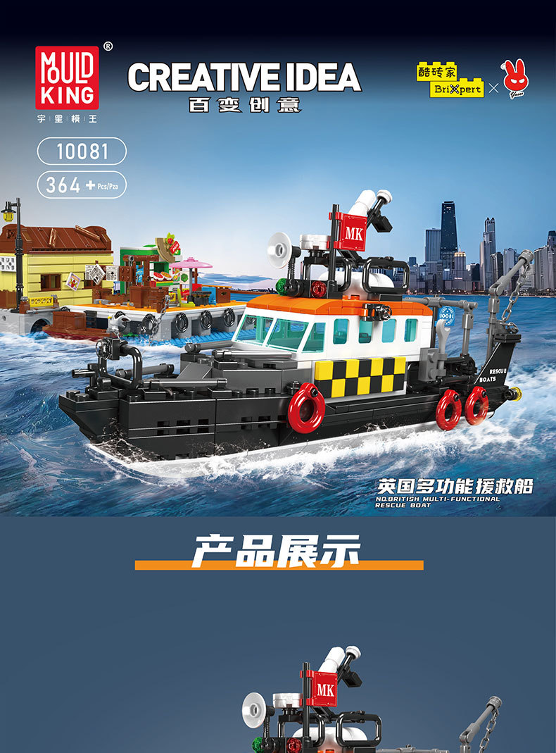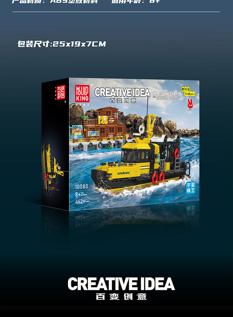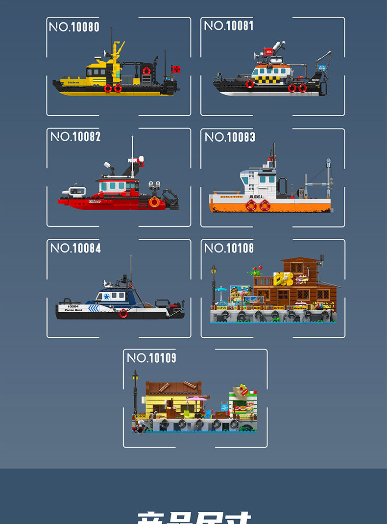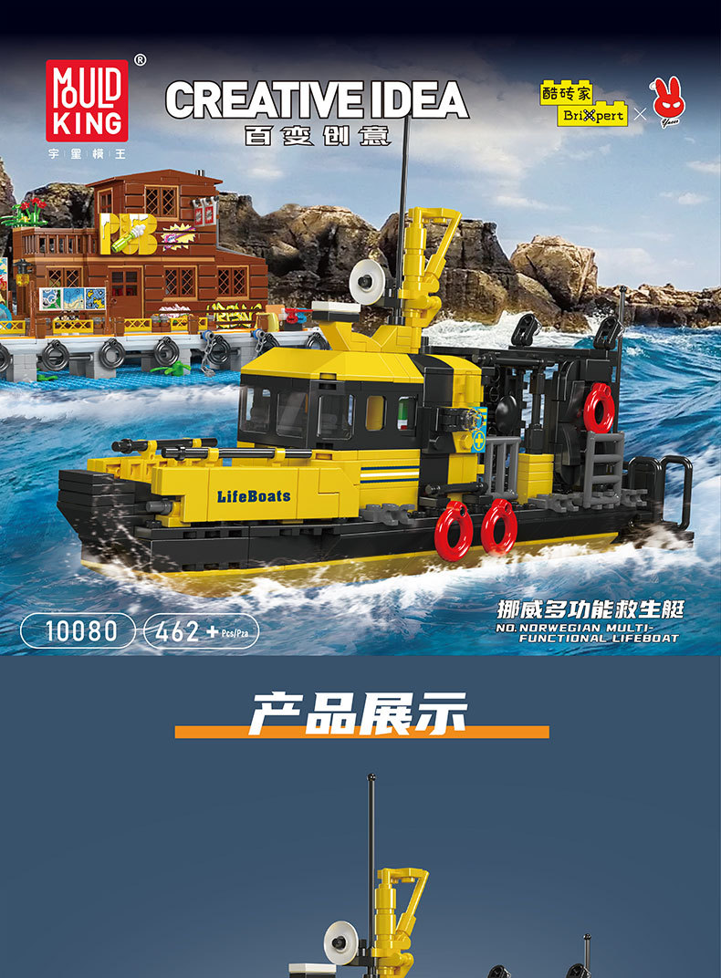 Yuxing 10080-10084 다기능 구명정 구조 보트 성인과 어린이 조립 모델 퍼즐 빌딩 블록스토어 가기