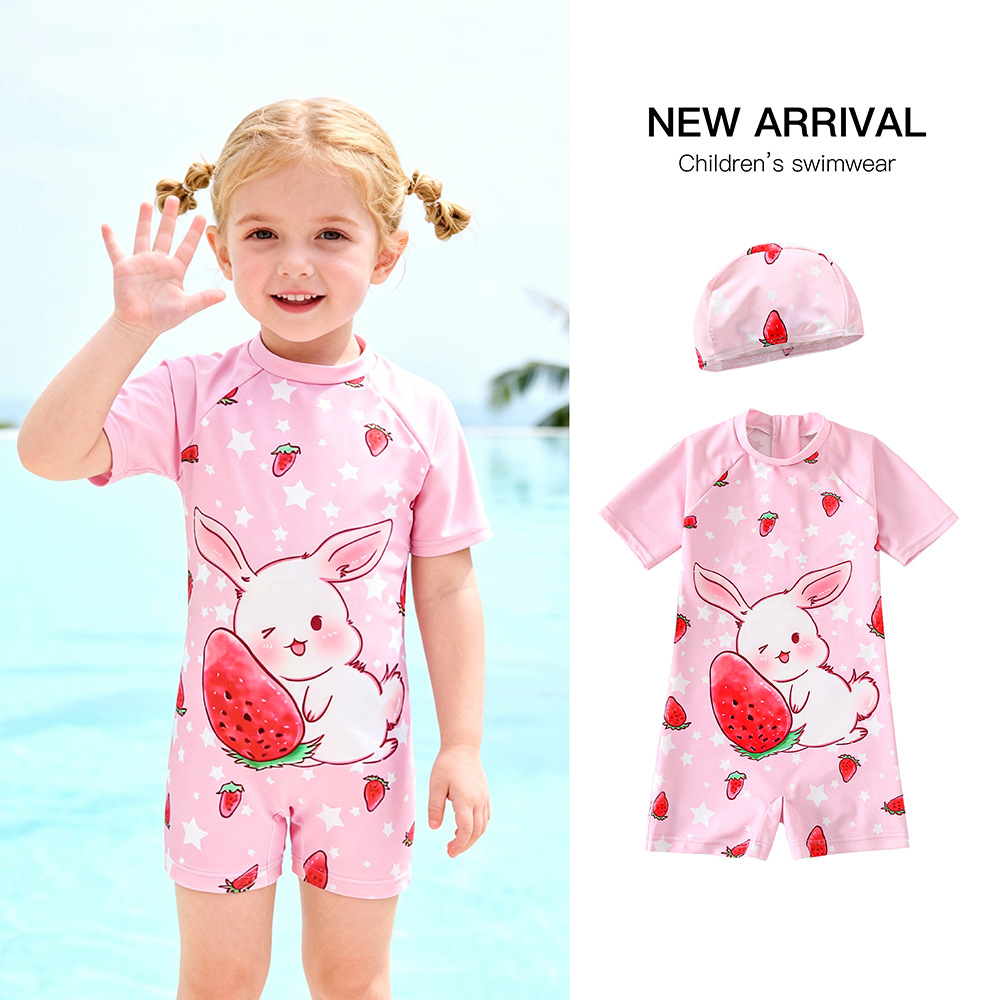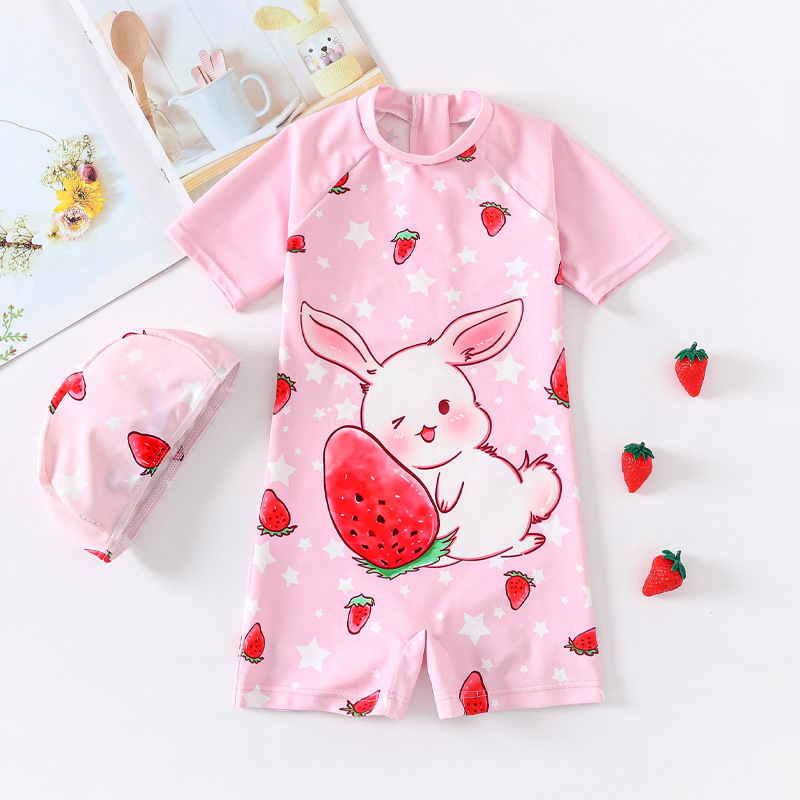 2026년 아동용 수영복 여아 원피스 귀여운 딸기 토끼 만화 캐릭터 여아 아기 온천 속건 수영복스토어 가기