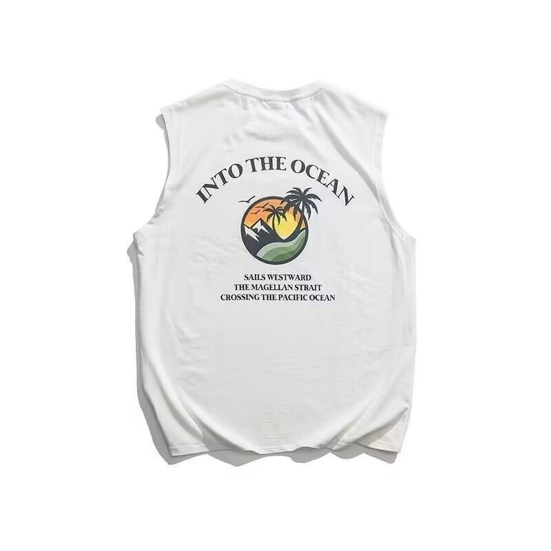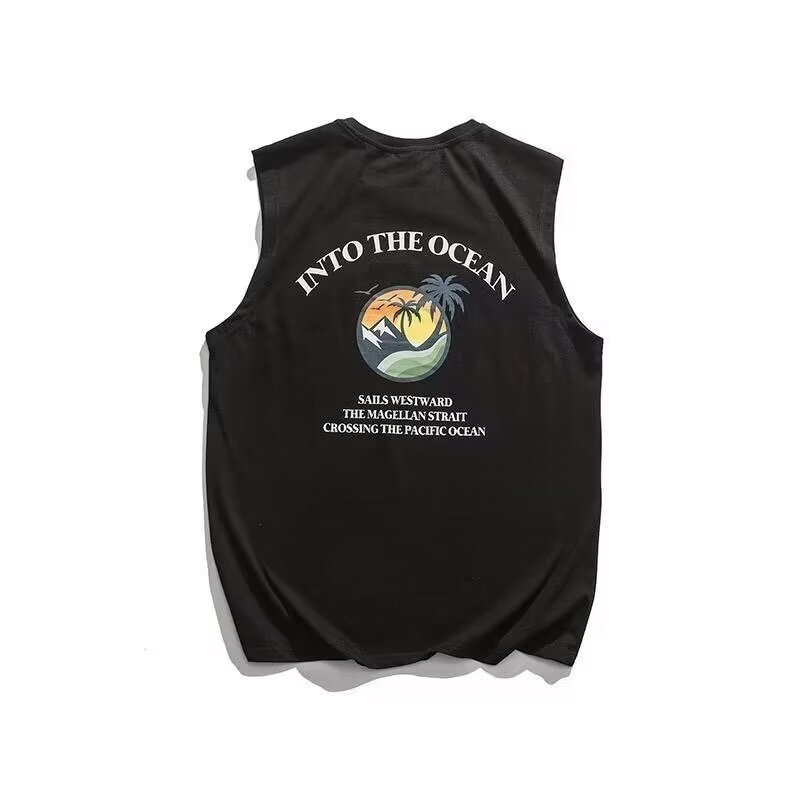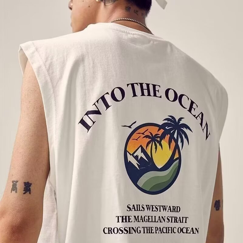 230G 헤비 코튼 조끼 남자 여름 미국 패션 브랜드 루즈 웨이스트 코트 티셔츠 캐주얼 조커 농구 탑스토어 가기
