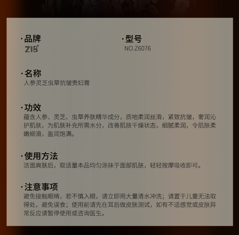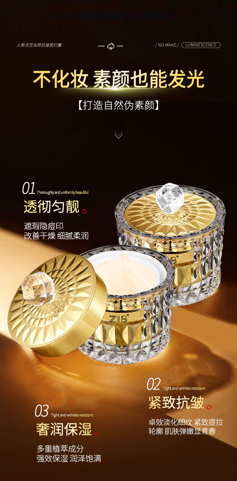 ZIB 인삼 Ganoderma lucidum Cordyceps 주름 방지 레이디 크림, 건조한 피부 보습 섬세한 피부 페이드 라인 개선스토어 가기