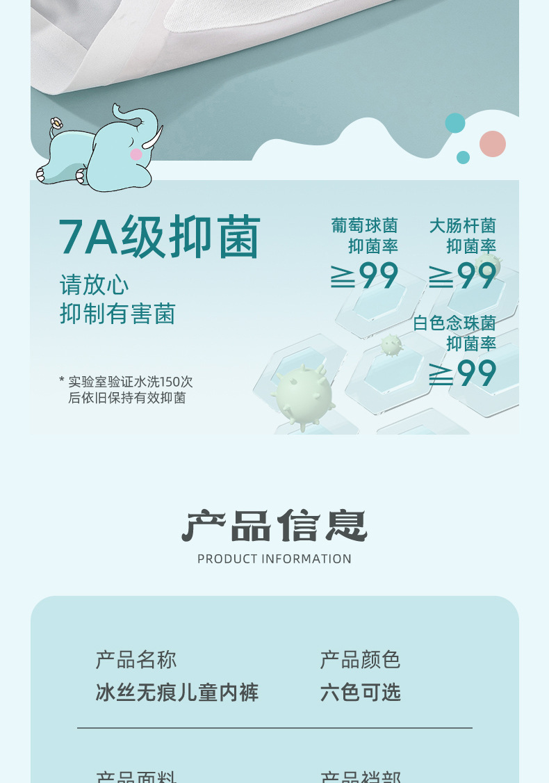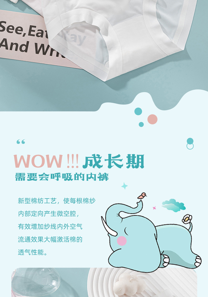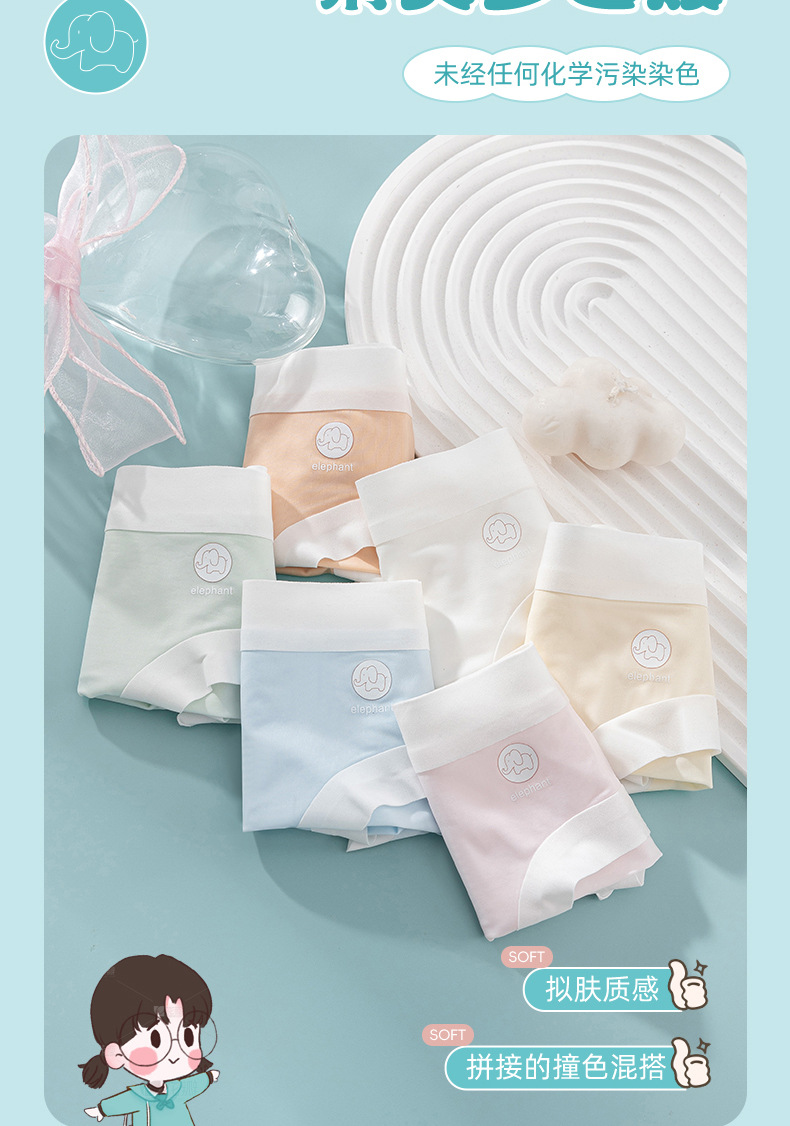 아이스 실크 대조 컬러 레터 코끼리 높은 탄성 어린이 속옷 여성의 7A 세균성 면화 회전식 편안한 통기성 소녀 브리프스토어 가기