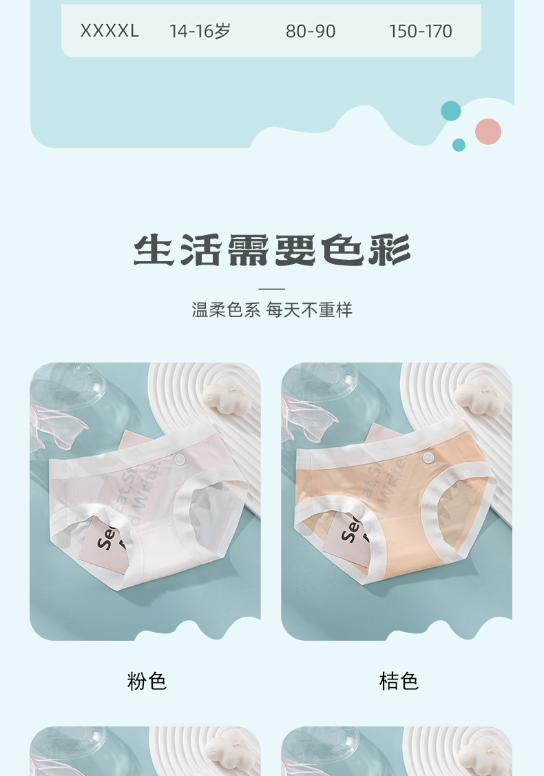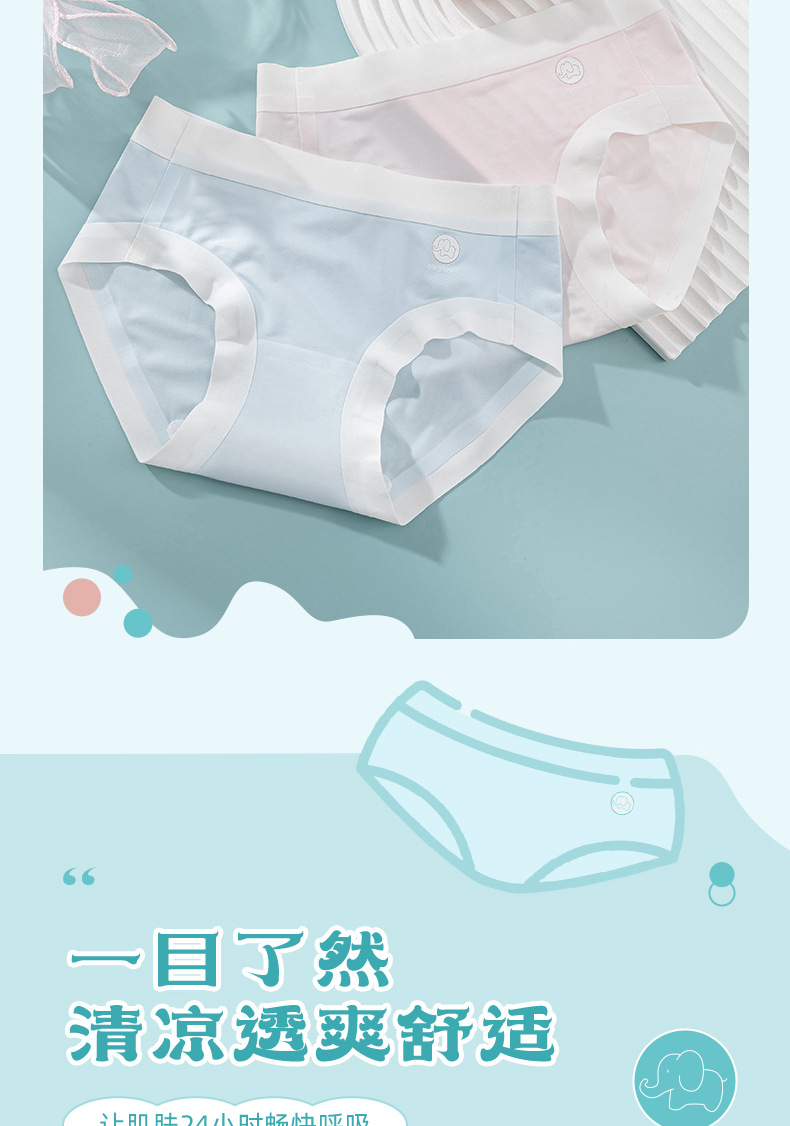아이스 실크 대조 컬러 레터 코끼리 높은 탄성 어린이 속옷 여성의 7A 세균성 면화 회전식 편안한 통기성 소녀 브리프
