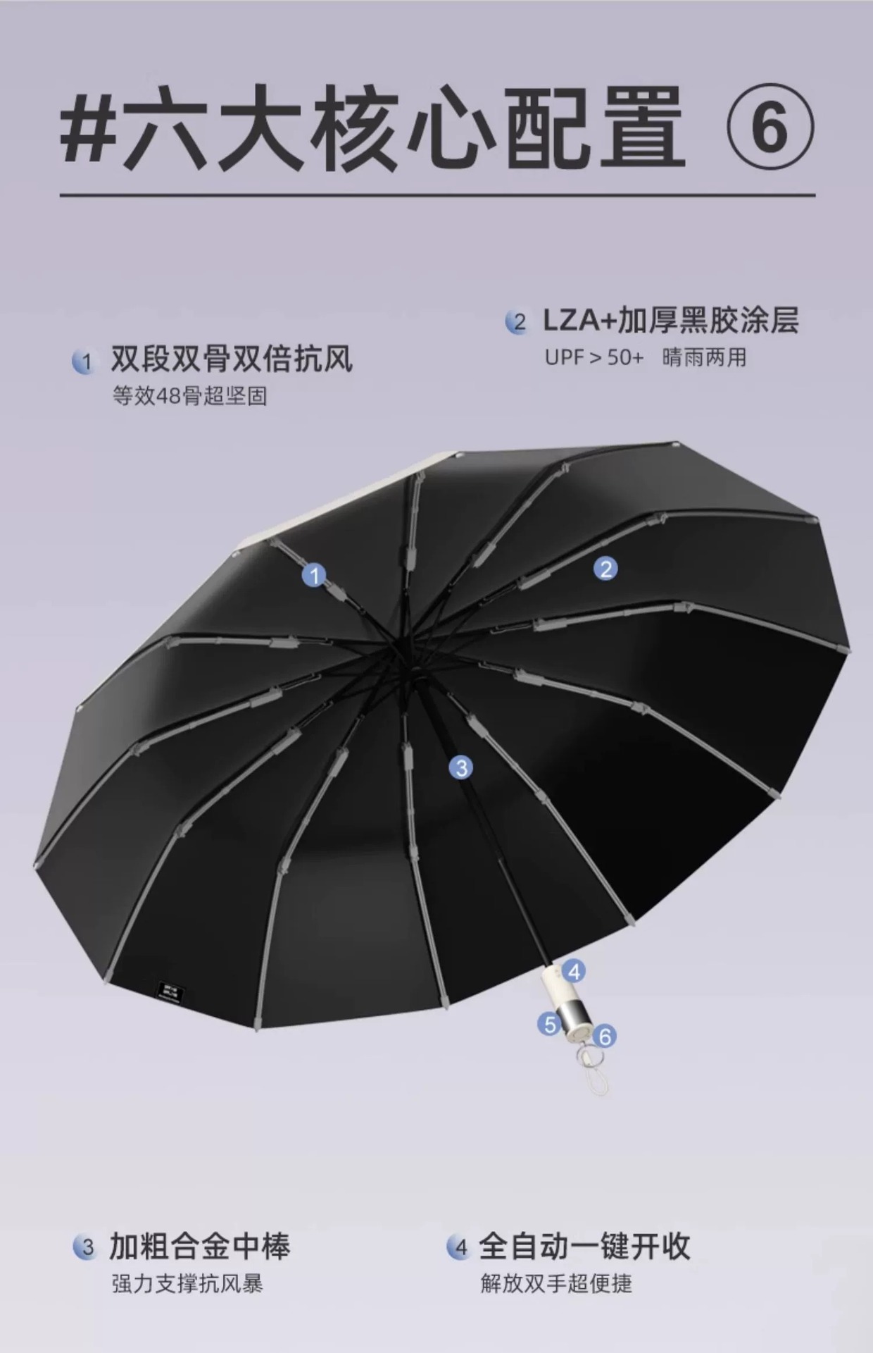 • 완전 자동 20 뼈 SOS 경보 우산-흑요석 블랙