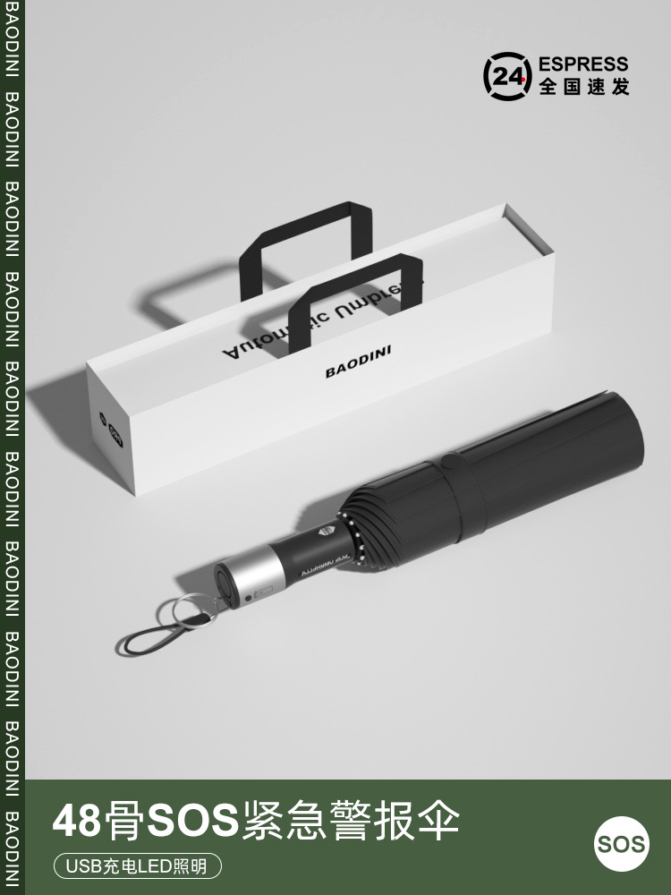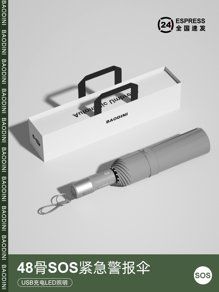 • 완전 자동 20 뼈 SOS 경보 우산-야 그레이