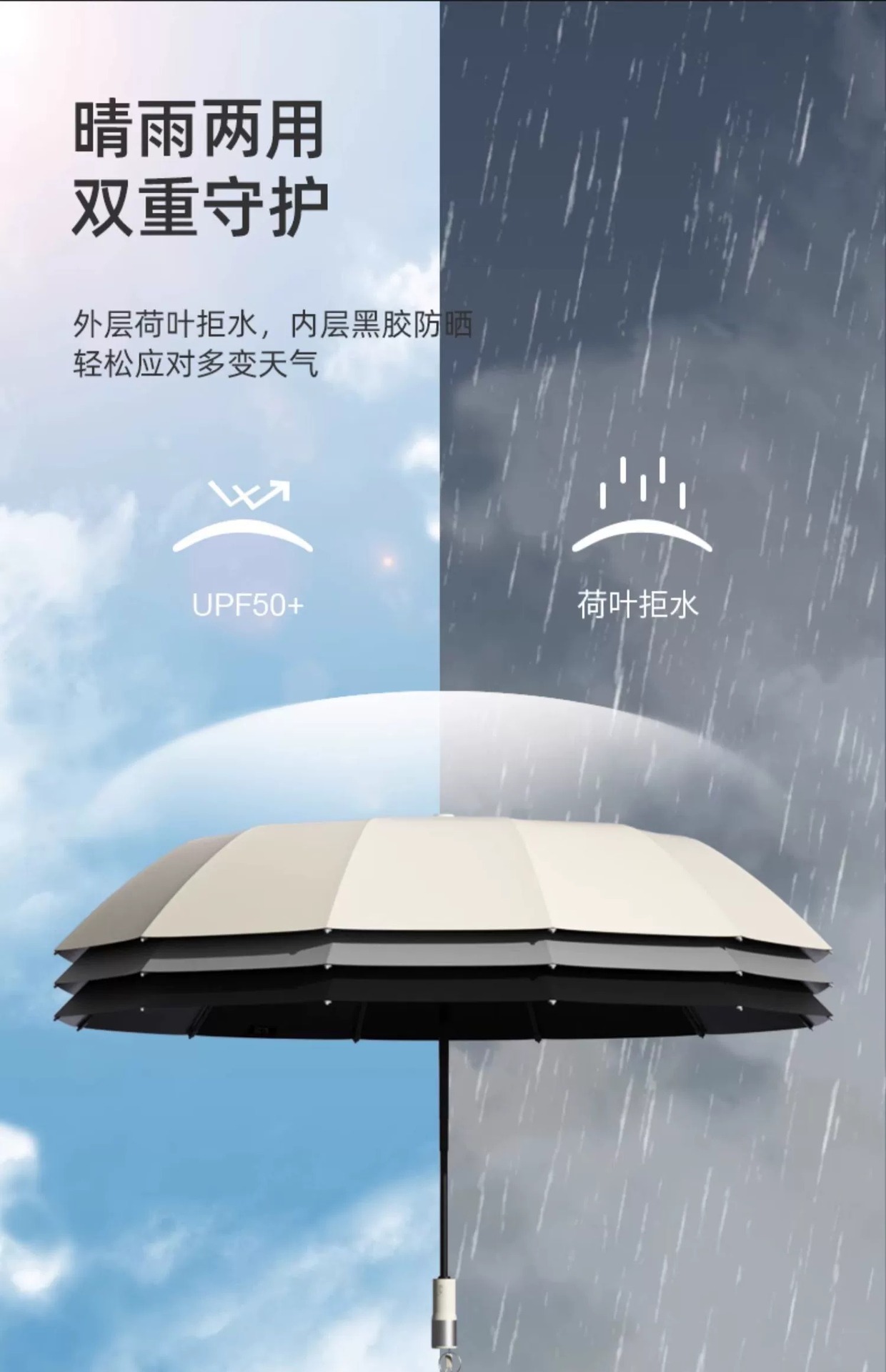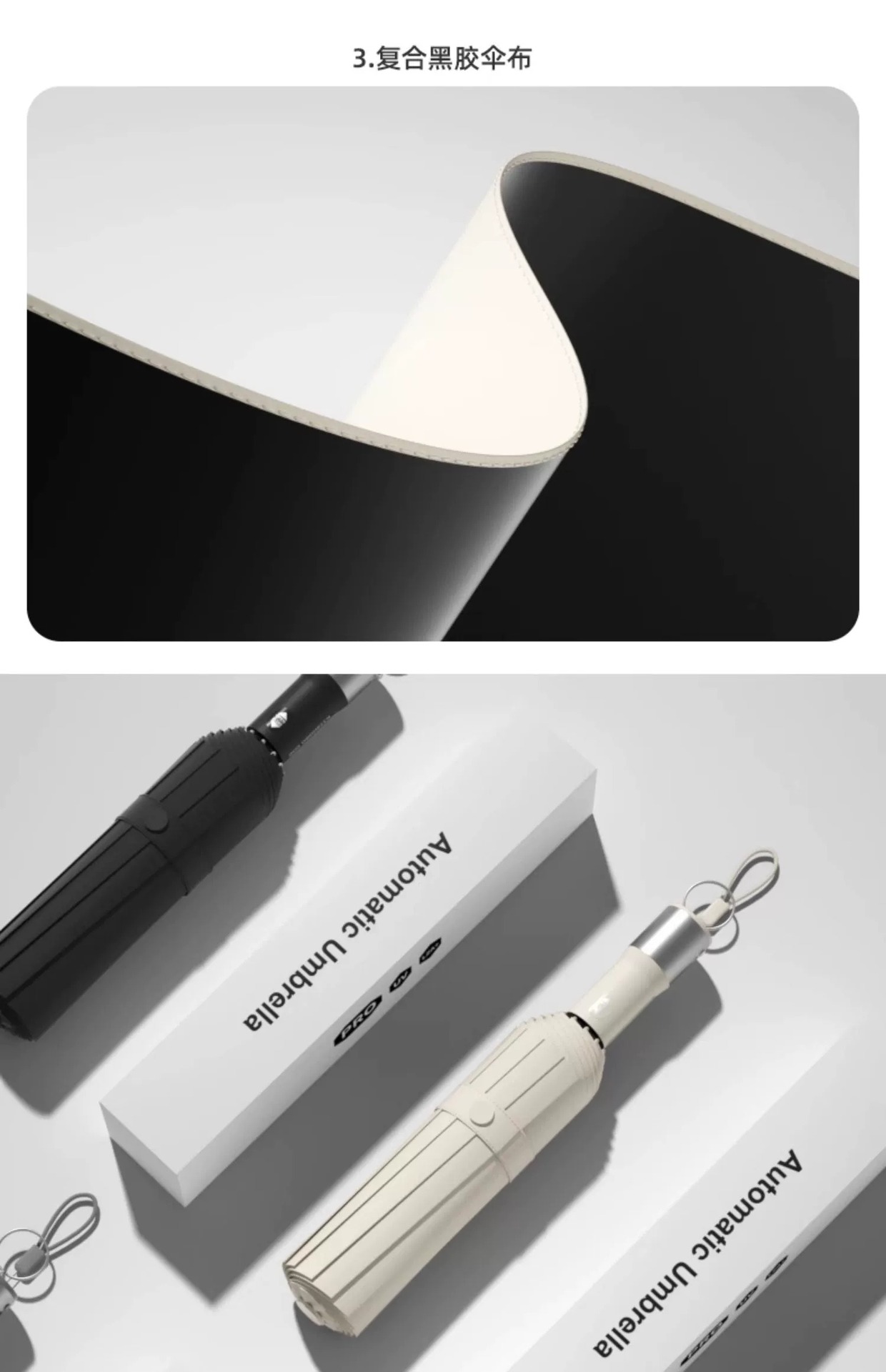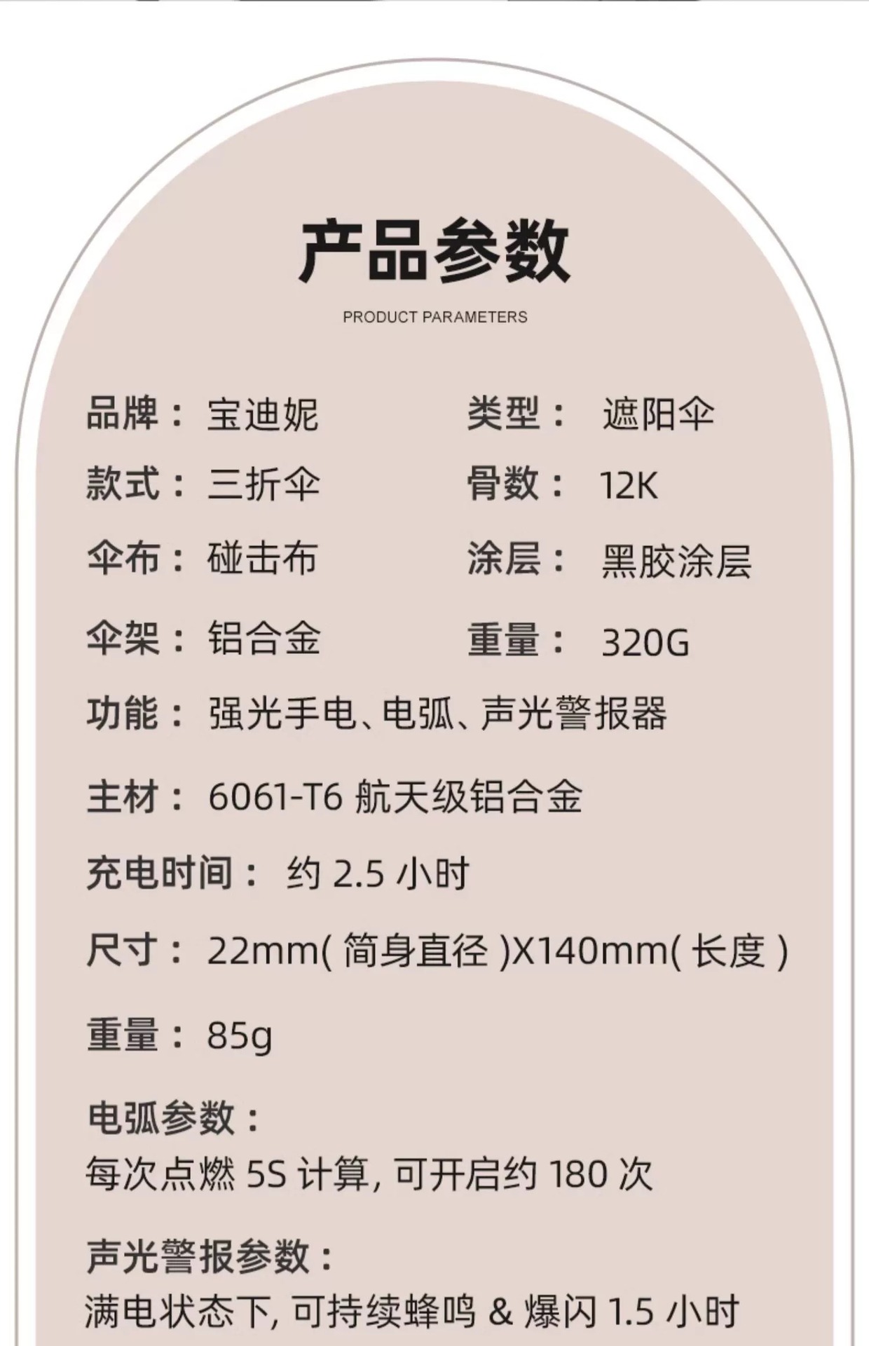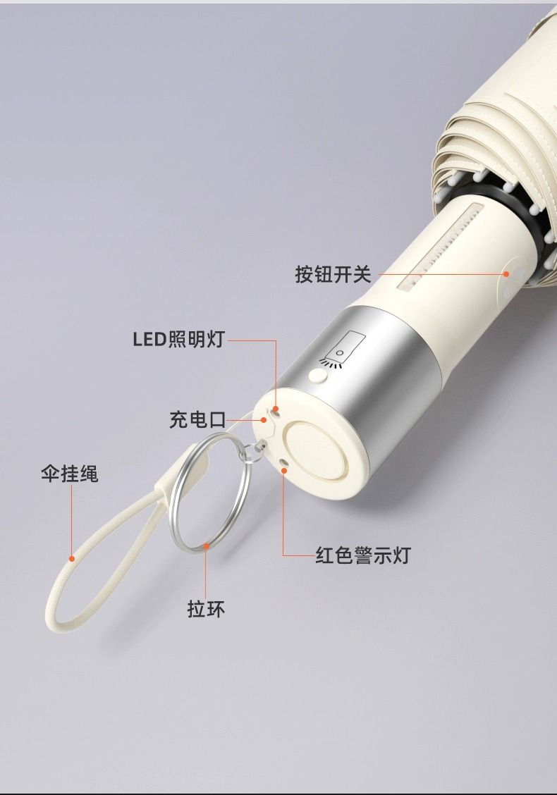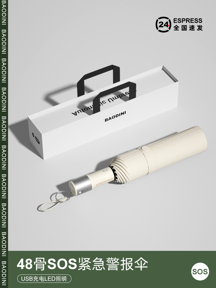 • 완전 자동 20 뼈 SOS 경보 우산-크림 화이트