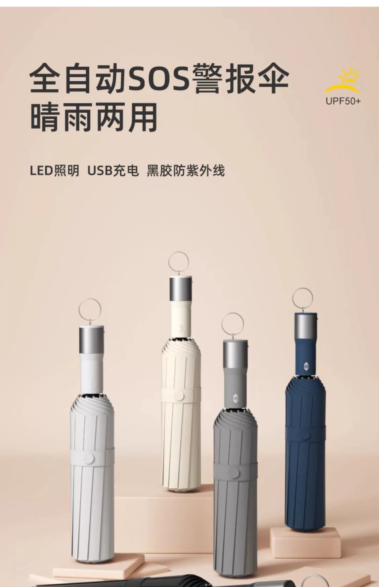 야외 우산 LED 우산 자동 대형 선 스크린 여성 태양 우산 접히는 도매 맑고 비오는 우산 SOS 우산스토어 가기