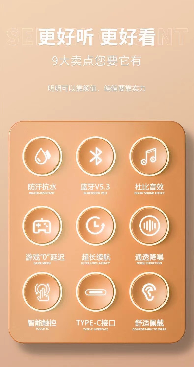 2025新款蓝牙耳机TWS无线耳机蓝牙5.3超长续航大电量入耳式好音质
