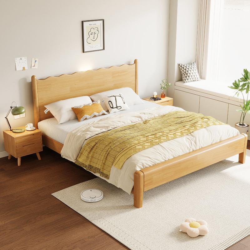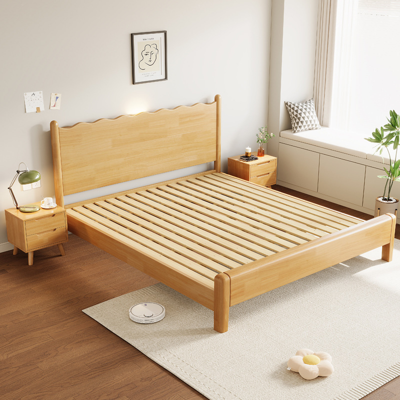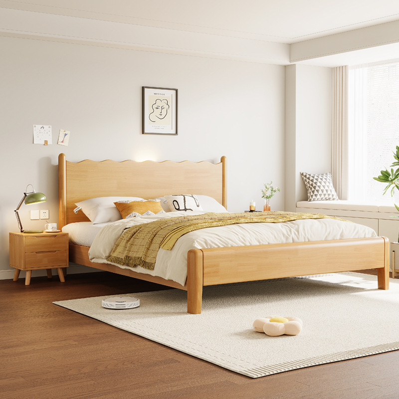 일본식 모든 솔리드 우드 베드 웨이브 베드 더블 침대 1.8 m 침대 프레임 싱글 침대 1.2 작은 아파트 로그 크림 윈드 베드
