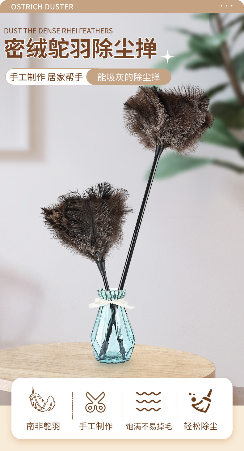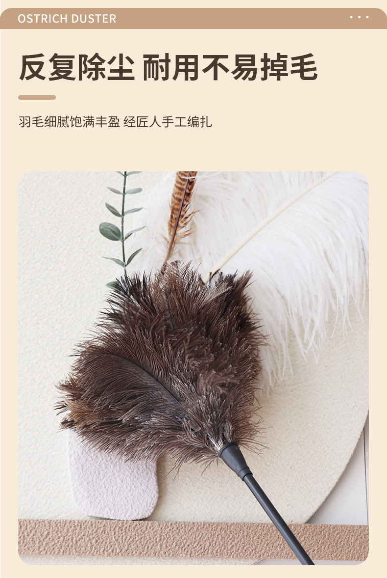 아마존 국경 간 뜨거운 판매 수제 진짜 타조 깃털 더스터 홈 먼지 청소 유물 정전기 방지 깃털 더스터스토어 가기