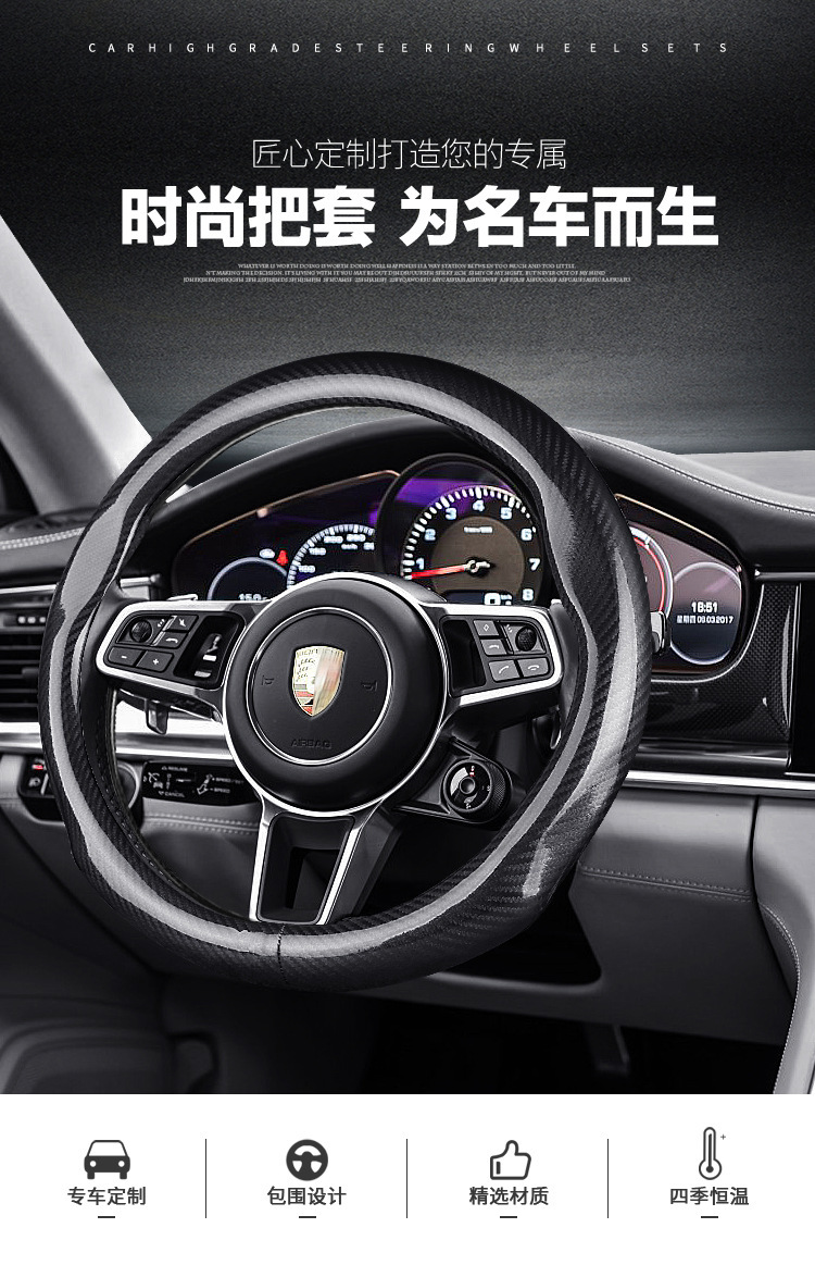 BMW 아우디 메르세데스-벤츠 폭스 바겐 혼다 볼보 도요타 탄소 섬유 스티어링 휠 커버 사계절 적용 가능한 핸들 커버에 적합스토어 가기