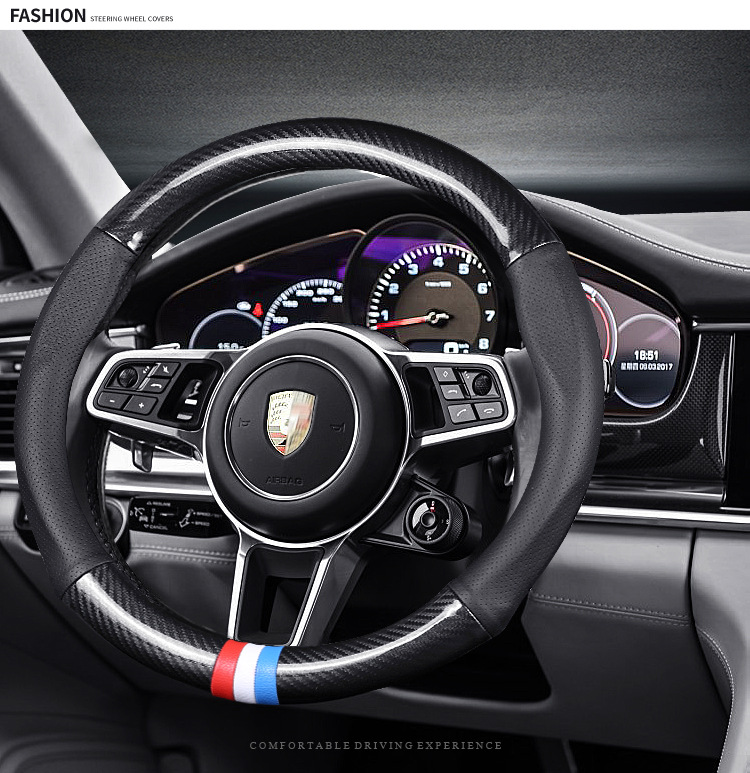 BMW 아우디 메르세데스-벤츠 폭스 바겐 혼다 볼보 도요타 탄소 섬유 스티어링 휠 커버 사계절 적용 가능한 핸들 커버에 적합