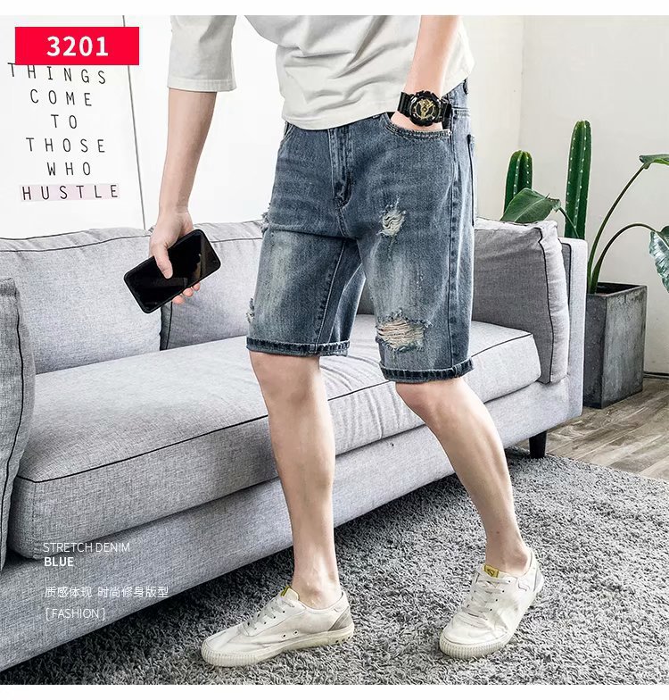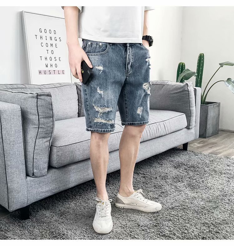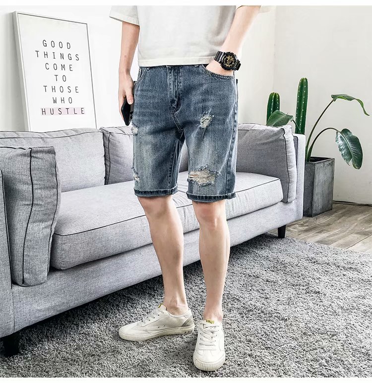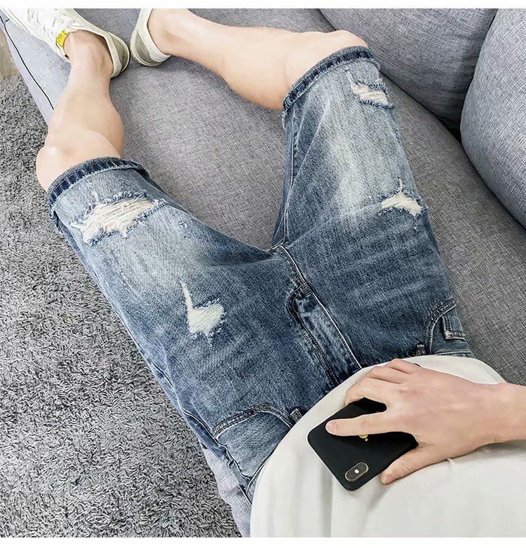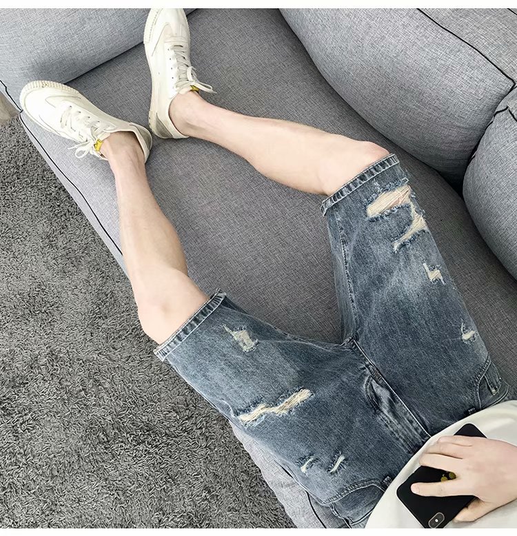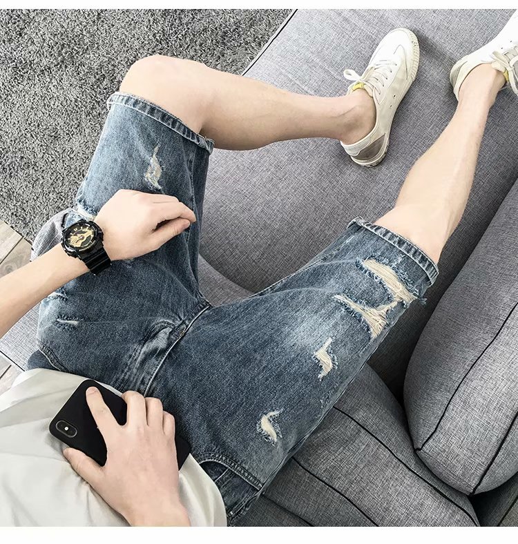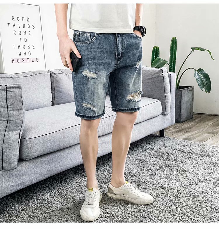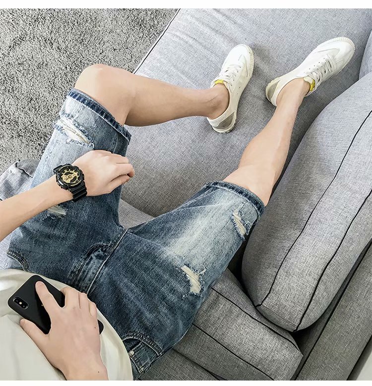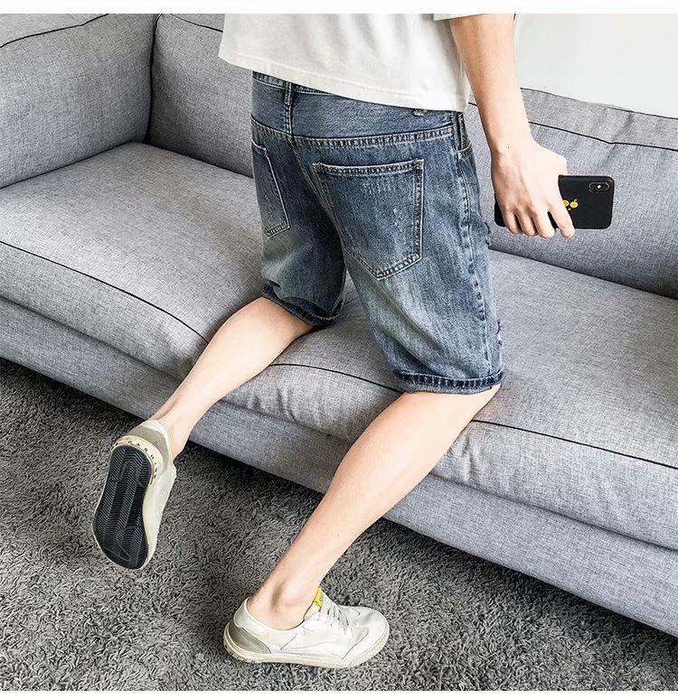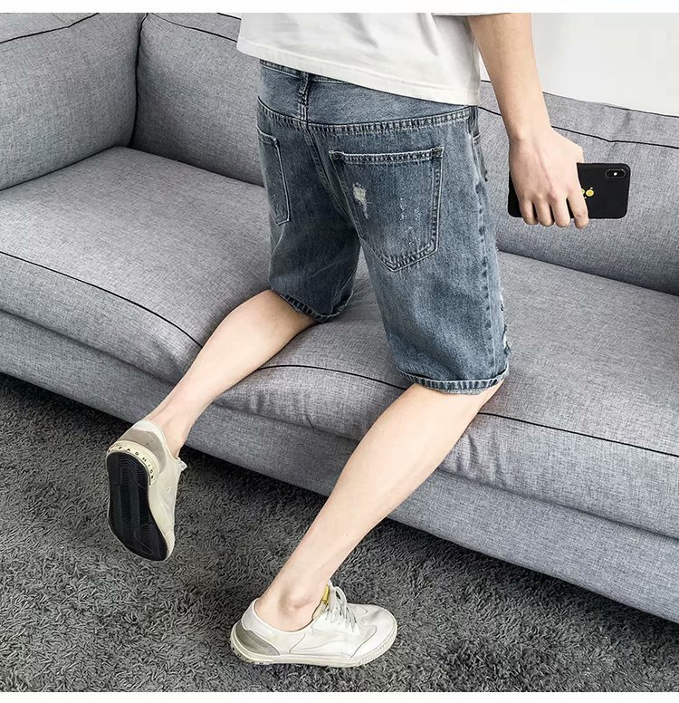 여름 새 리핑 데님 반바지 남자 5 점 바지 한국 유행 여름 올매치 캐주얼 얇은 바지스토어 가기