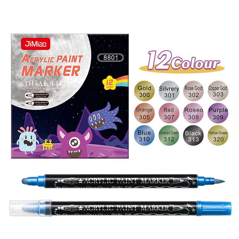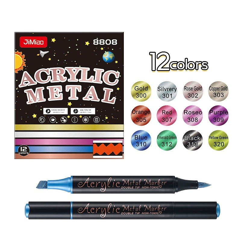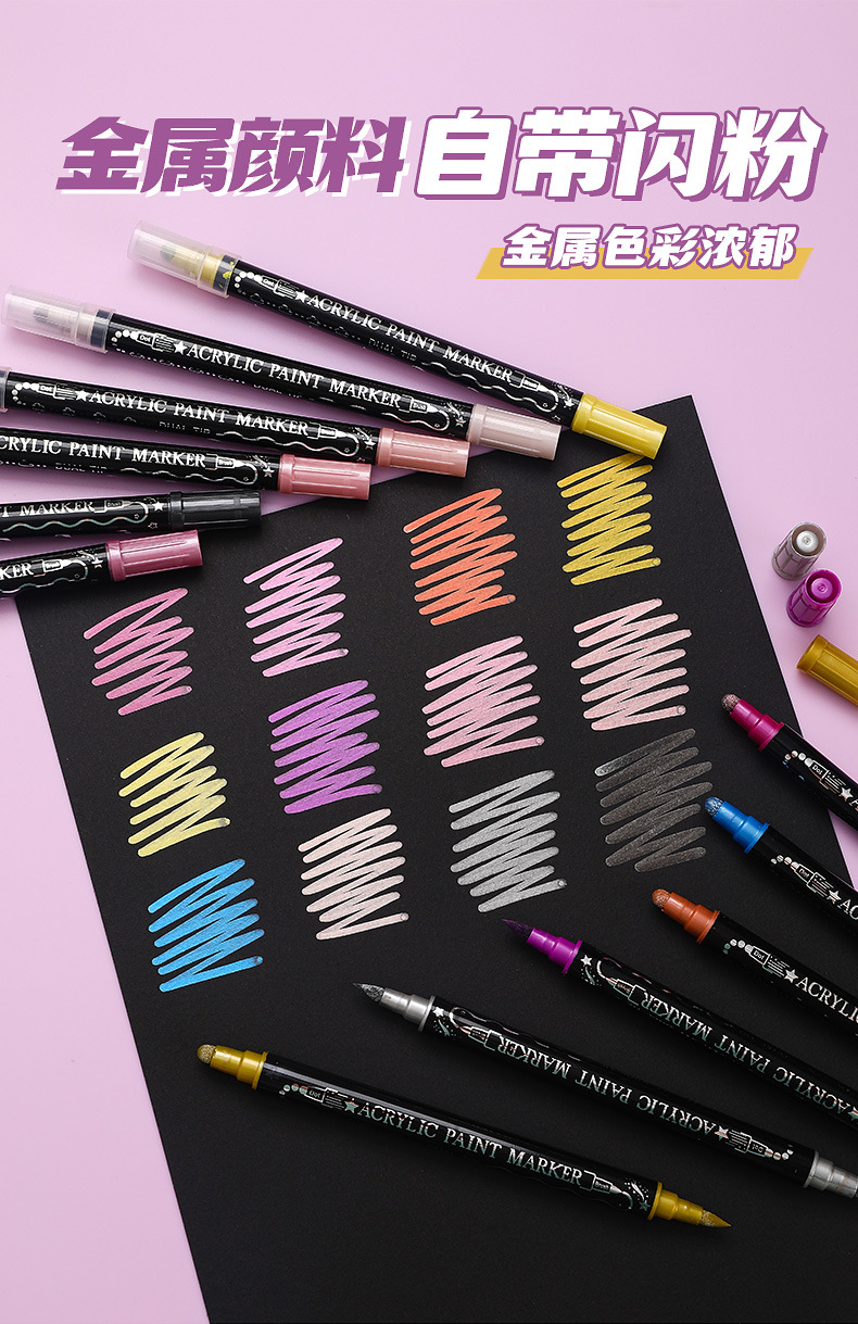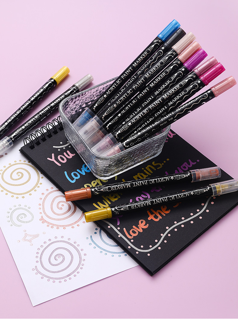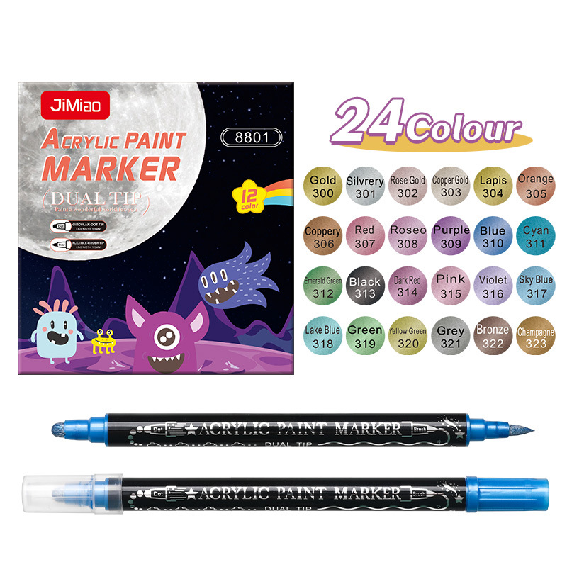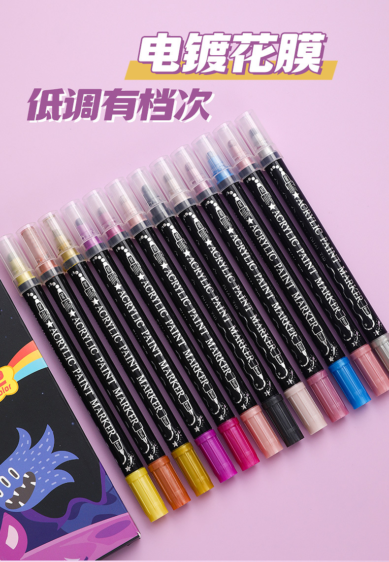 양면 아크릴 메탈 마커 펜 12색 24색 불투명 색상 겹쳐 쌓아도 되는 마커 펜 수성 어린이 DIY 그림펜