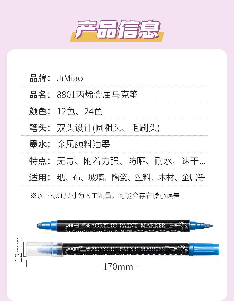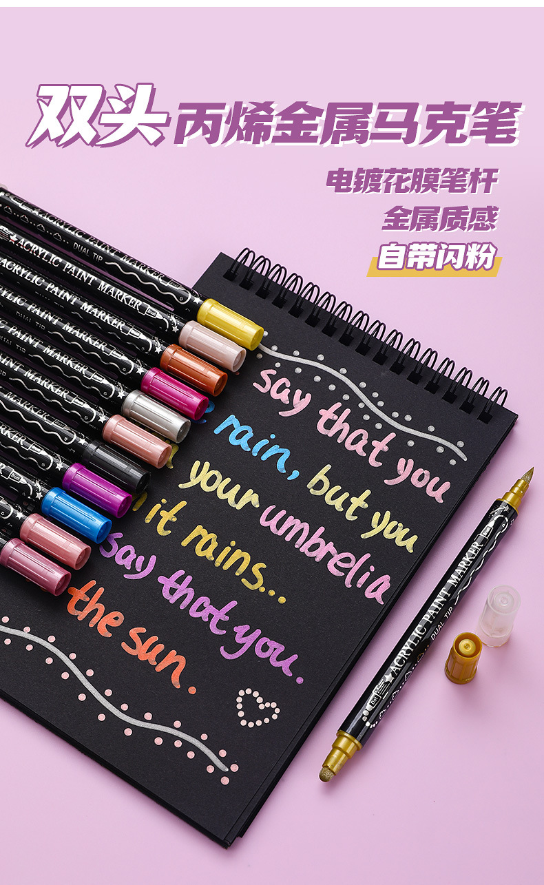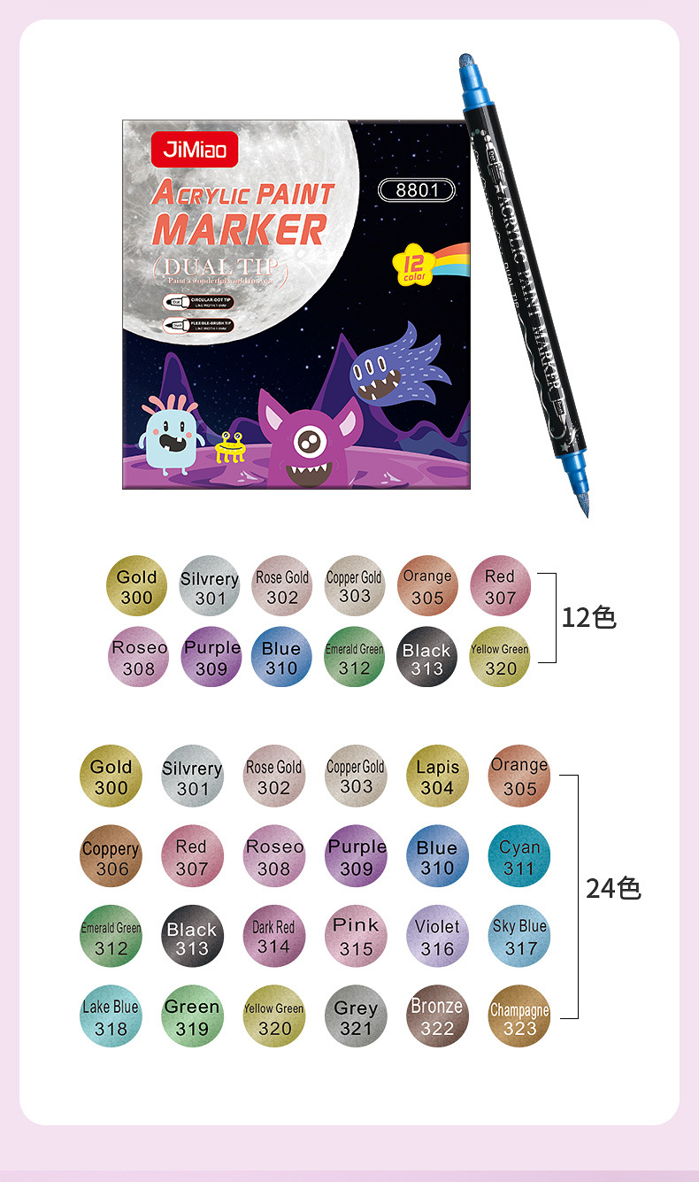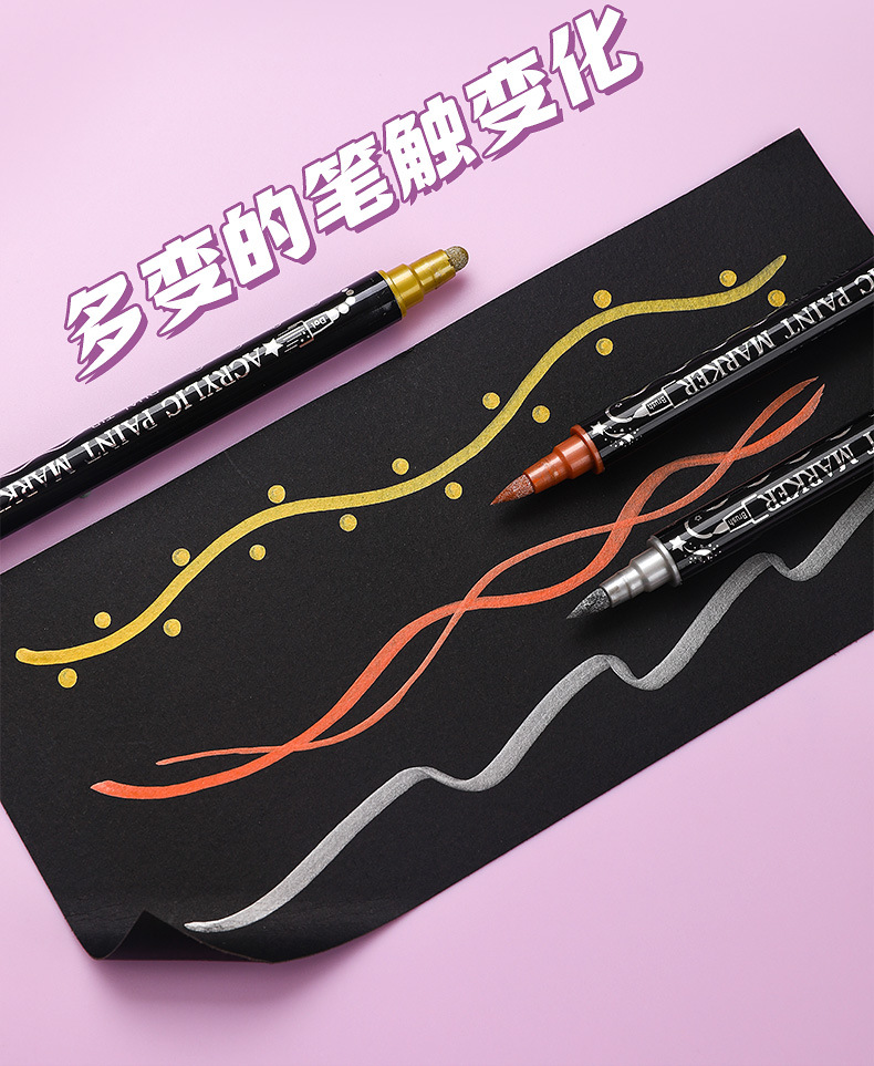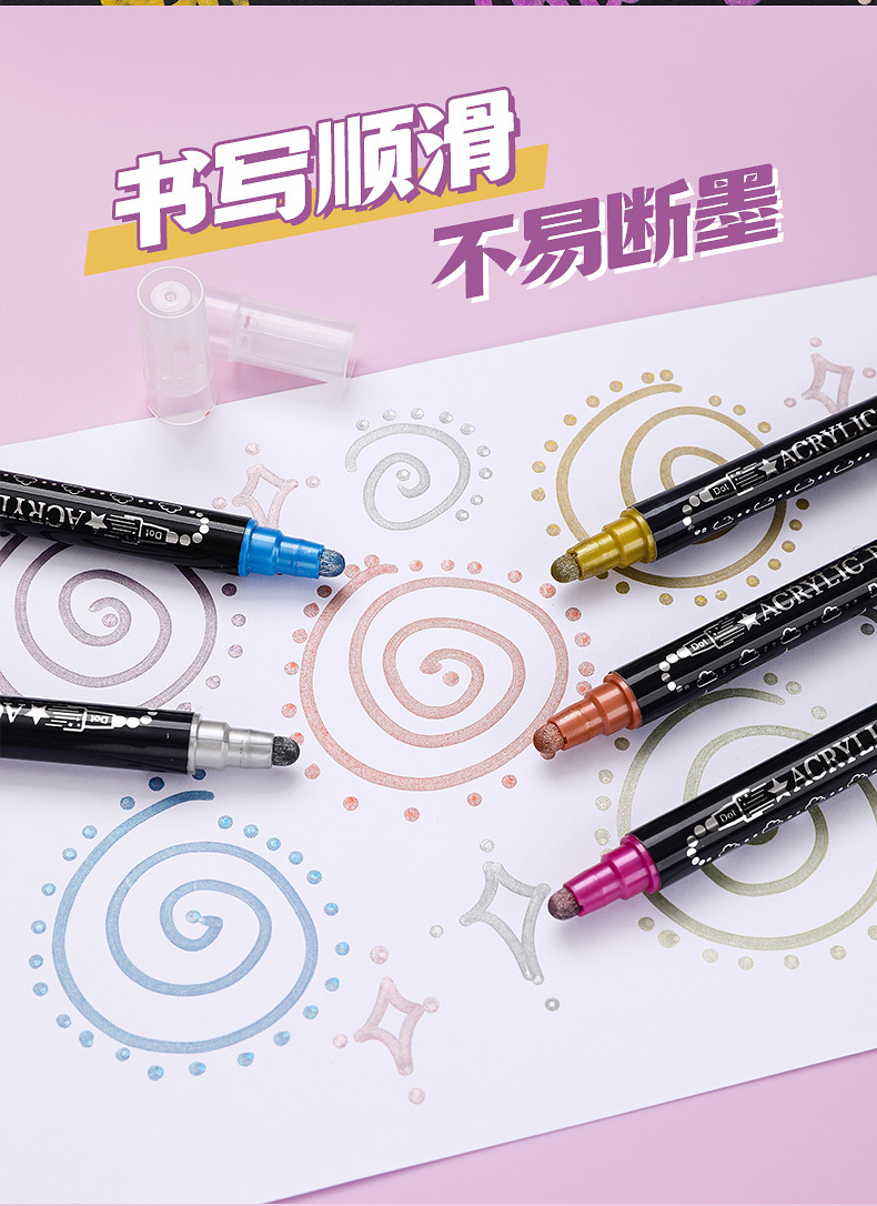 양면 아크릴 메탈 마커 펜 12색 24색 불투명 색상 겹쳐 쌓아도 되는 마커 펜 수성 어린이 DIY 그림펜