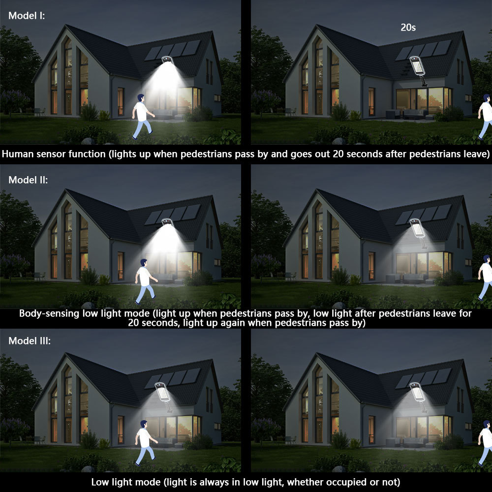 第一档 :白天充电灯不亮,夜间人来高亮,人走灯灭