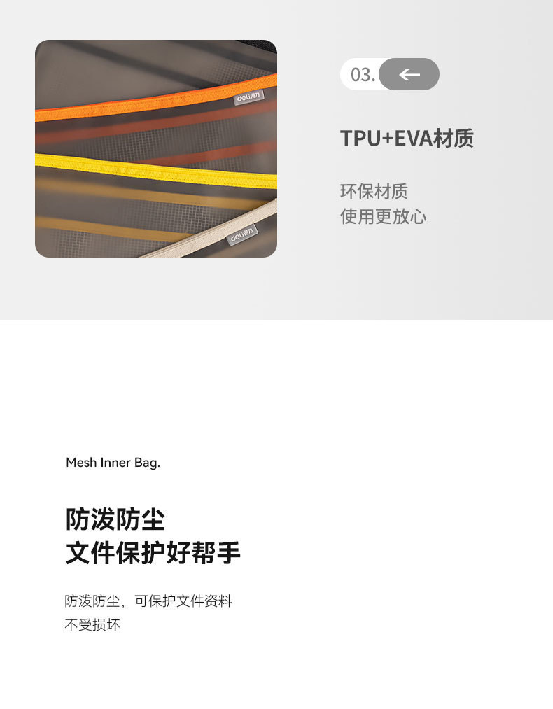 델리 64867 문서 가방 a4 두꺼운 방수 다중 구획 정보 가방 테스트 종이 가방 사무실 저장 가방 높은 색상 값