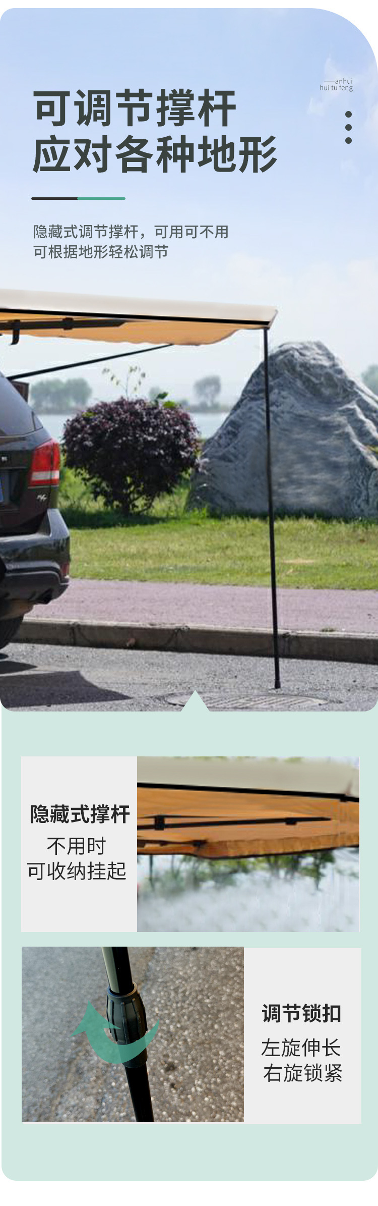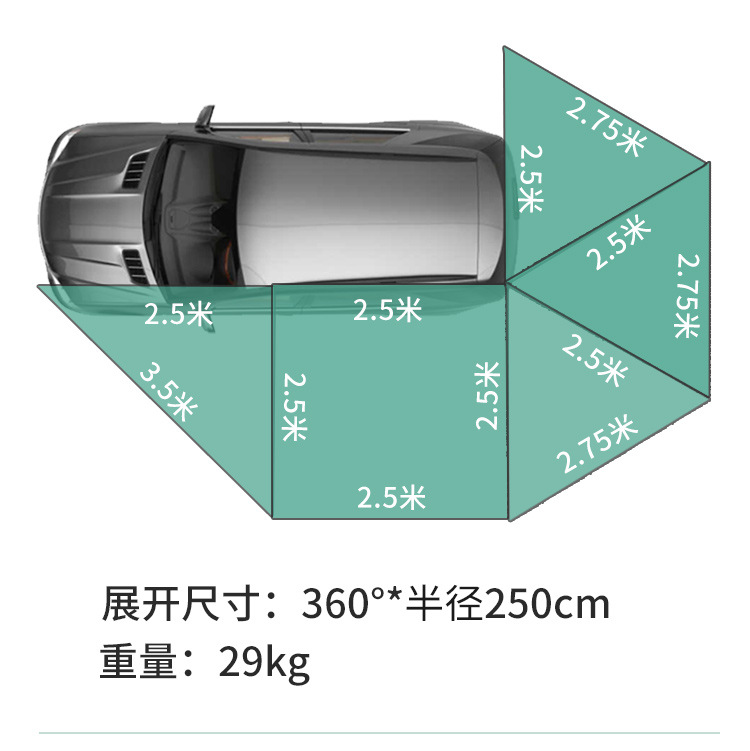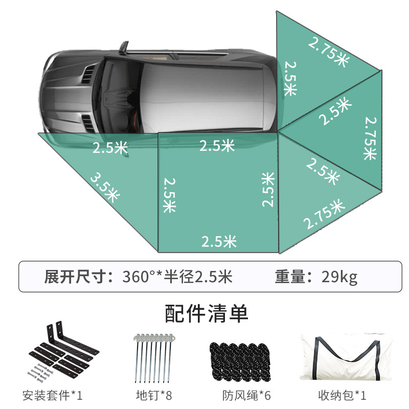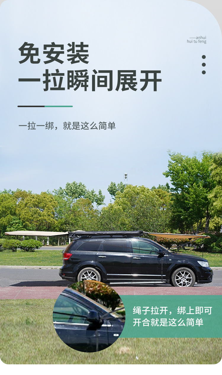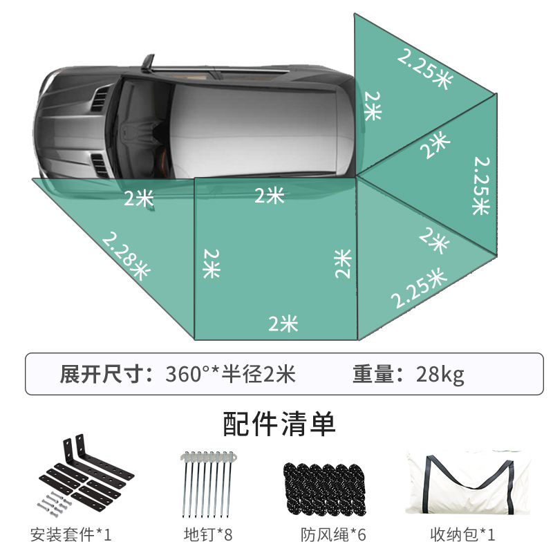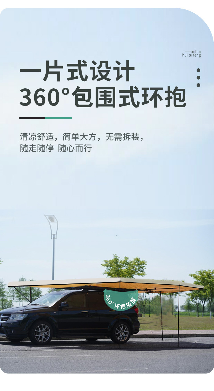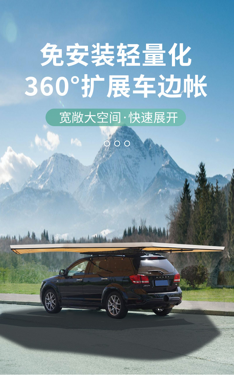 360 도 자동차 사이드 텐트 전체 자동 퀵 드라이브 후면 캠핑 사이드 텐트 팬 모양의 야외 캠핑 카 사이드 캐노피