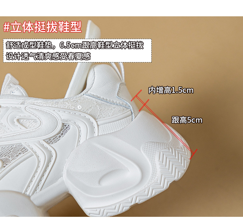 2024 여름 신상 한국 스타일 KPU 캐주얼 메쉬 신발 학생 신발 두꺼운 밑창 빈틈없는 패션 트렌디 신발 댄스 신발 여성 신발