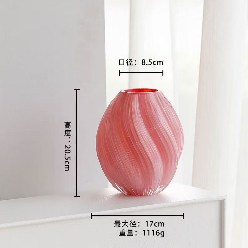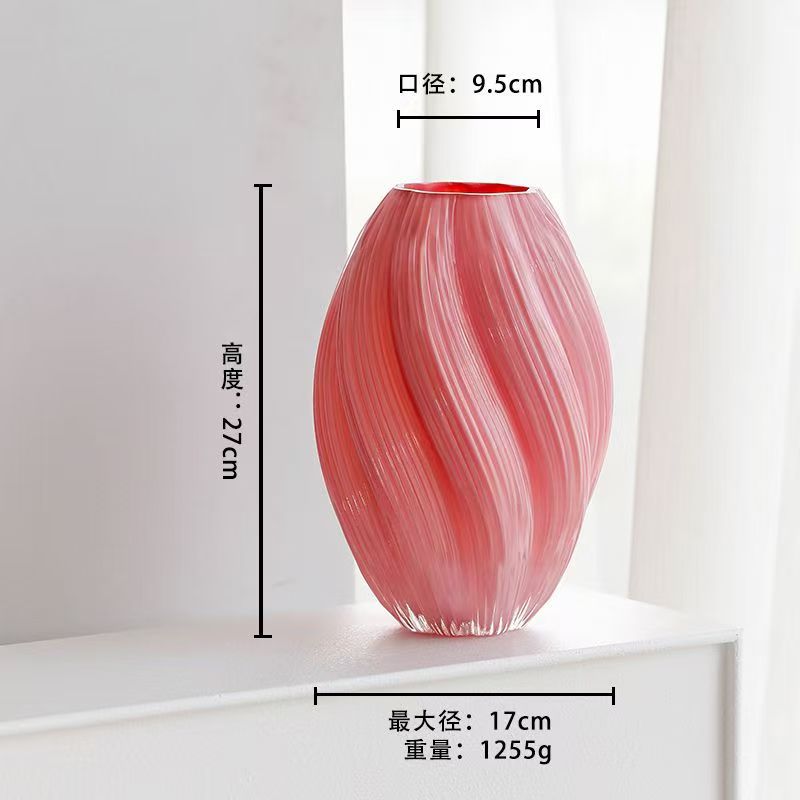 몰토스 꽃병 핑크 나선 불규칙한 트위스트 수경 현대 홈 장식 유리 꽃