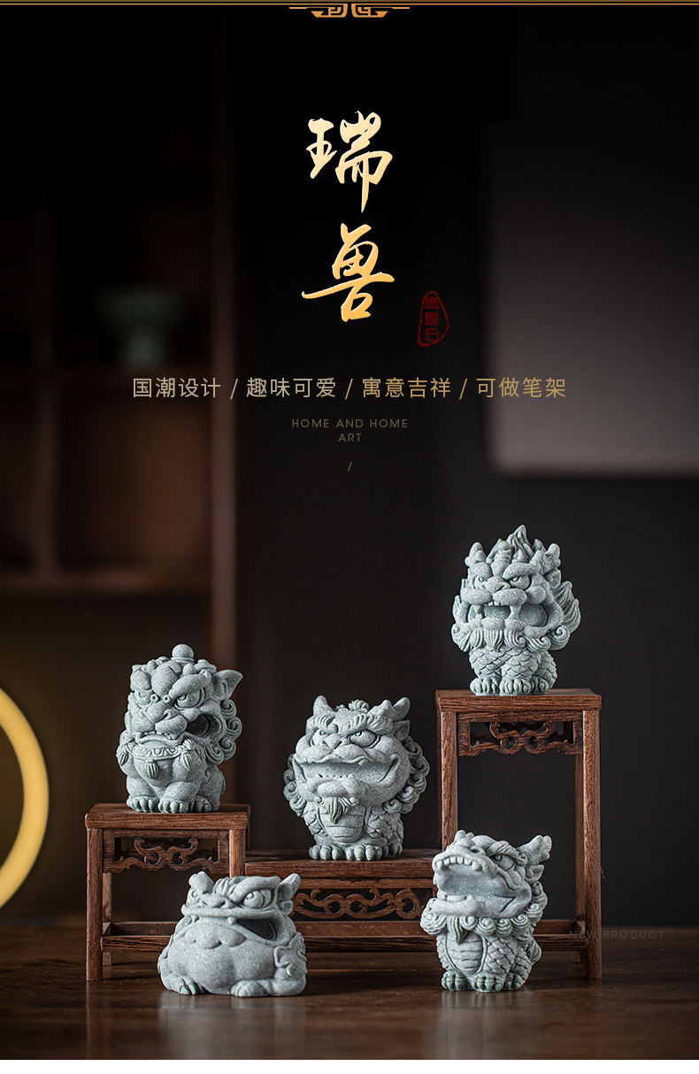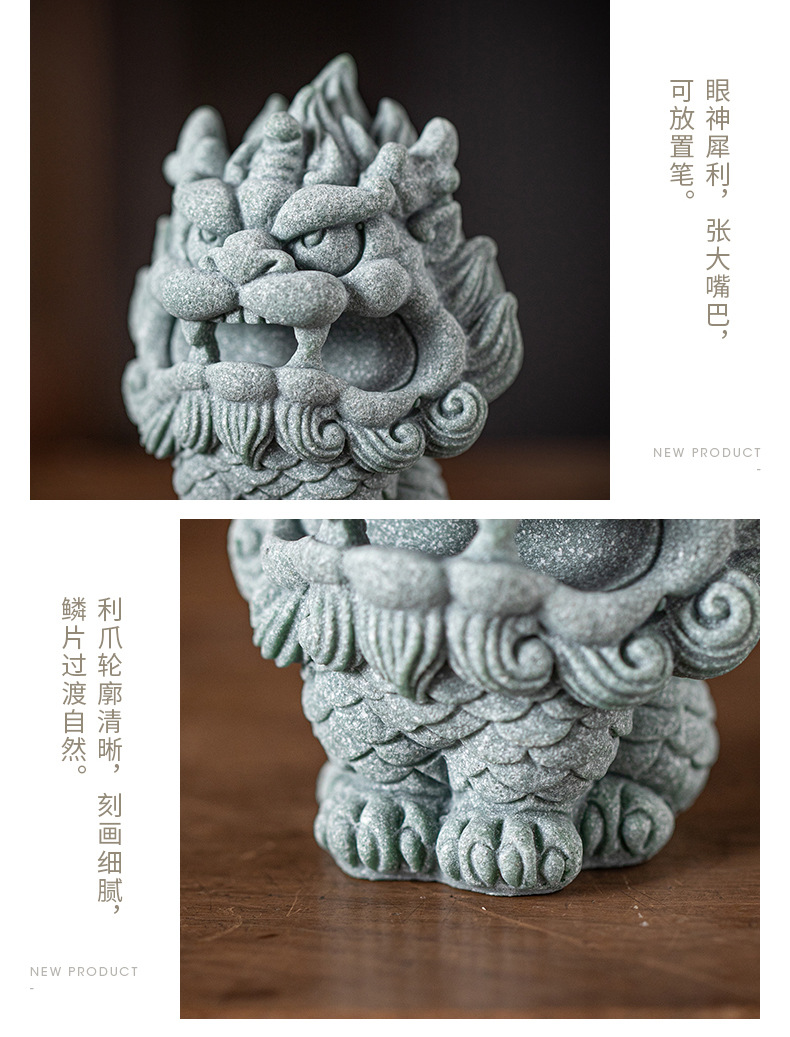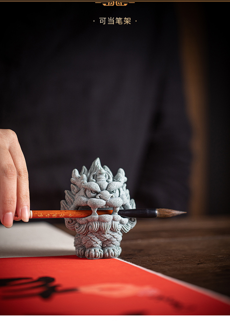 창조적 인 스위스 야수 키린 골든 두꺼비 픽시 펜 랙 펜 선반 쓰기 방 문지름 차 애완 동물 장식품 중국 스타일 연구 바탕 화면 장식