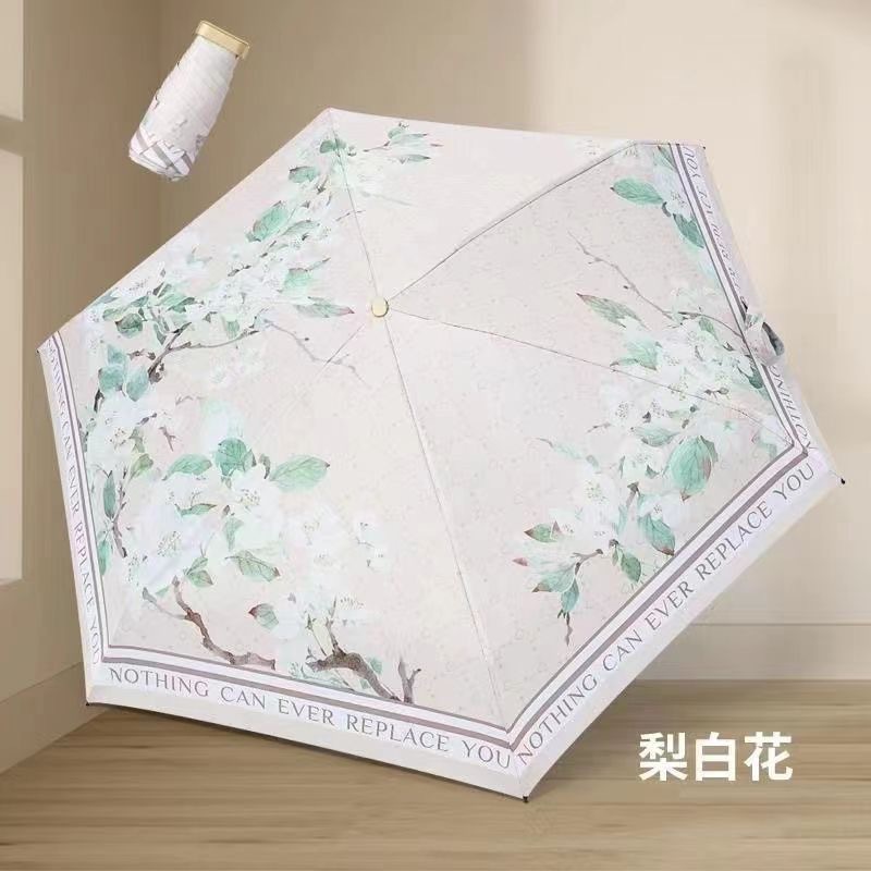 울트라 라이트 휴대용 60% 접힌 태양 우산 여성의 UV 보호 및 비 방지 이중 사용 우산 작은 포켓 미니 우산 인쇄 패턴