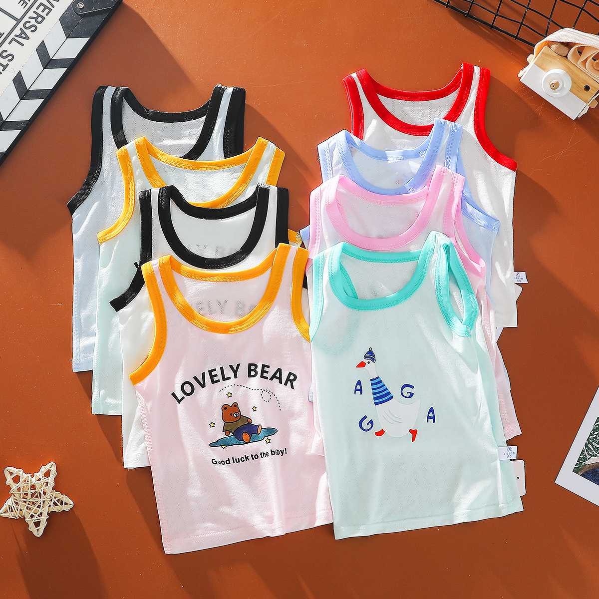 모달 뼈없는 아기 메쉬 조끼 여름 얇은 소년과 소녀 아이들을위한 아이스 실크 통기성 민소매 탑