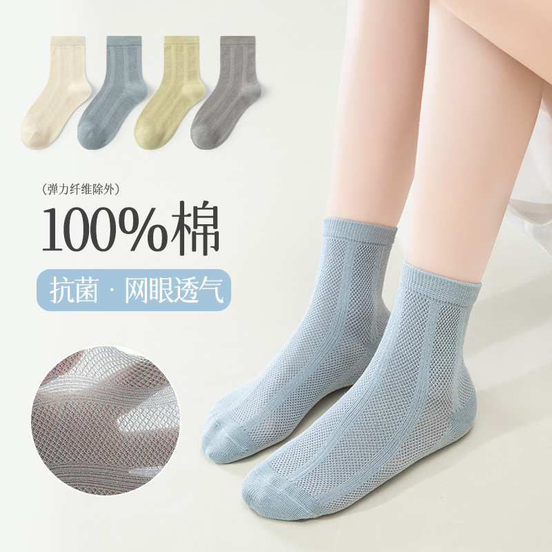 100% 면 어린이 양말 A급 남아용 중대형 어린이 및 청소년용 단색 심플 봄 여름 얇은 면 항균 양말스토어 가기