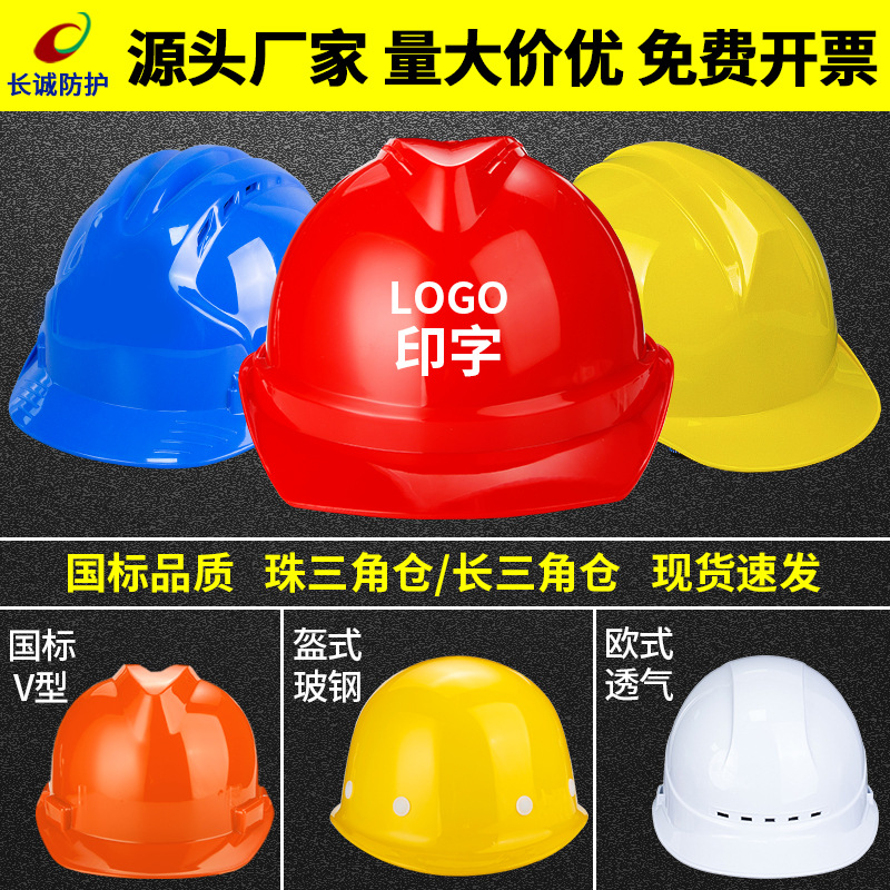 ABS国标安全帽三筋印字LOGO批发建筑工程加厚安全帽工地施工头盔