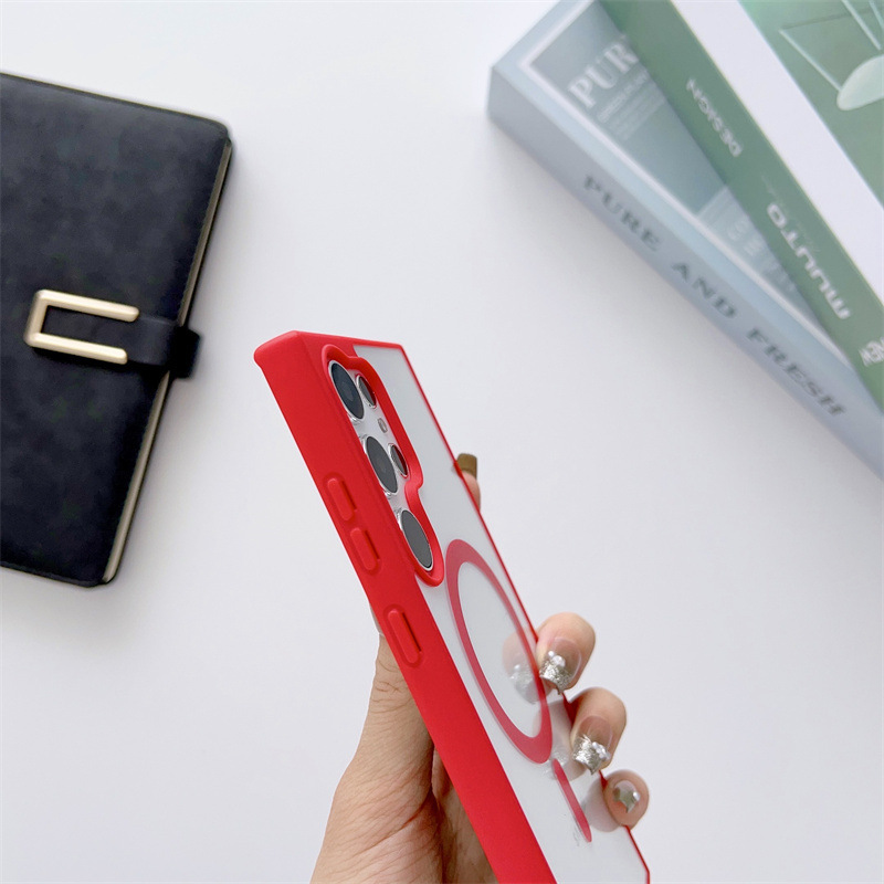 삼성 S24 휴대폰 케이스에 적합, 자석식 아크릴 컬러 S23 울트라 투명 S25 피부 느낌 보호 케이스 A56