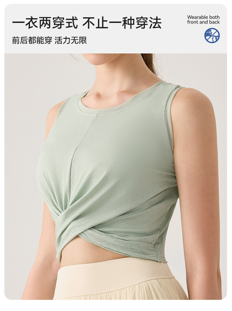 Zhizhi 여성용 양면 스포츠 요가복, 슬리밍 피트니스 탑, 통기성 메쉬 러닝 조끼, 블라우스 V100스토어 가기