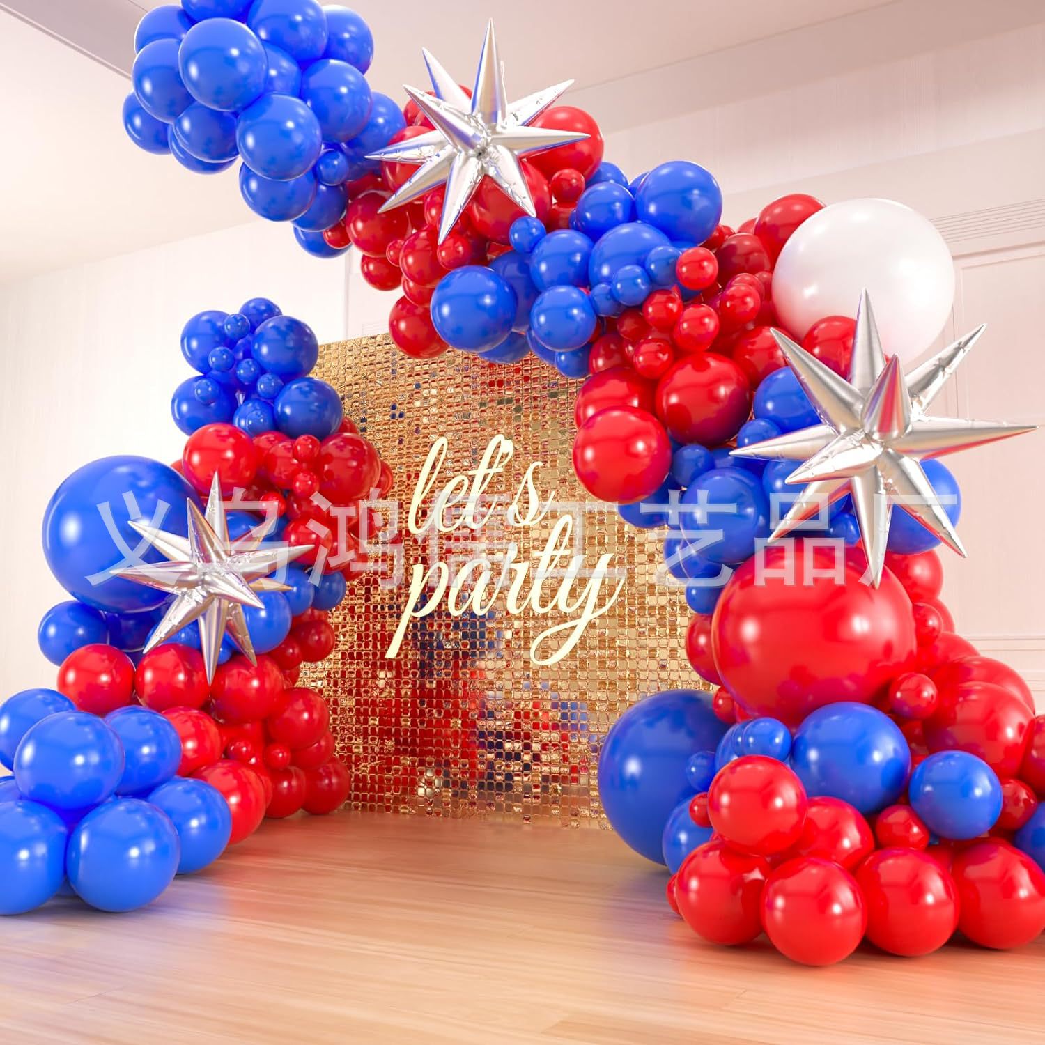 • 레드 블루 샤워 독립 기념일 풍선 체인