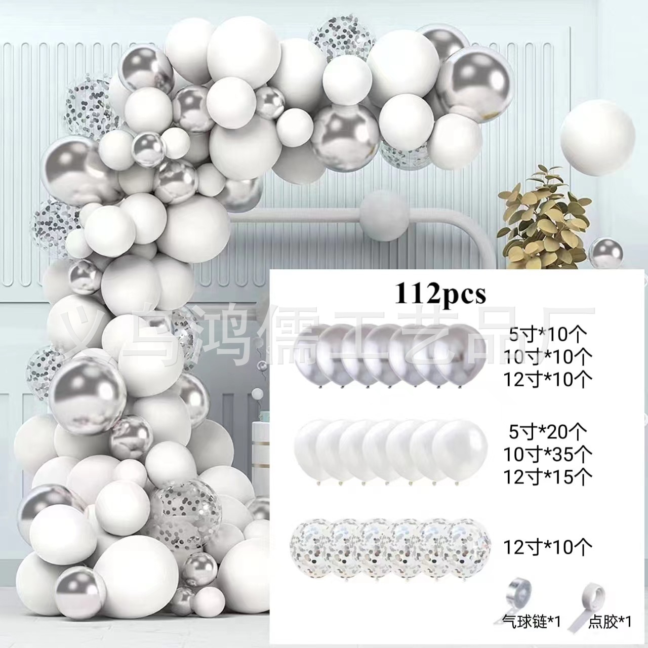 • 금속 실버 흰색 단색 생일 신부 결혼식 장식 풍선 112PCS