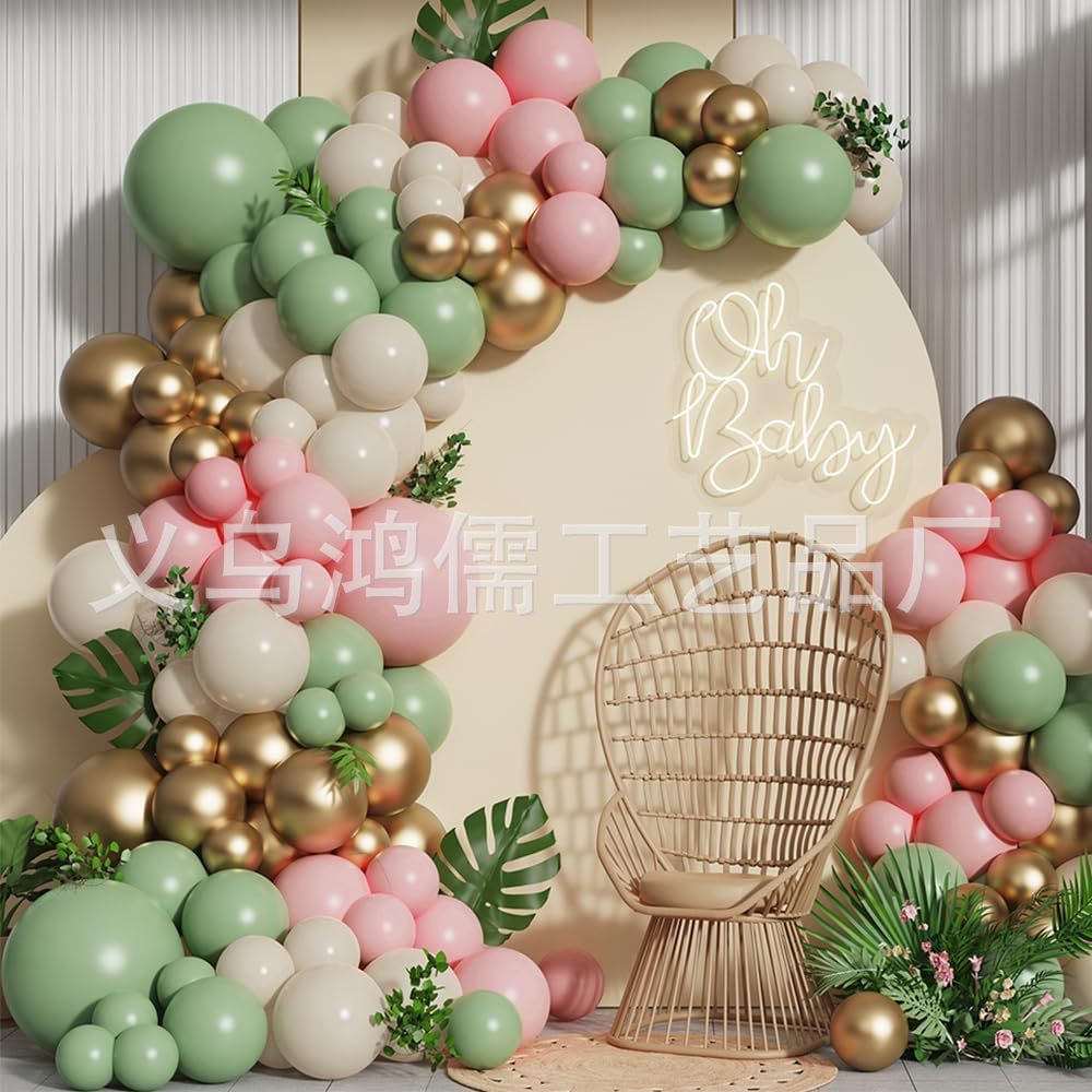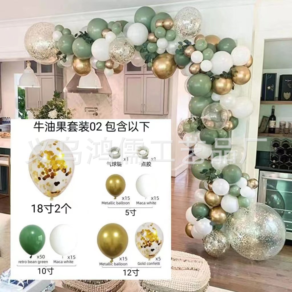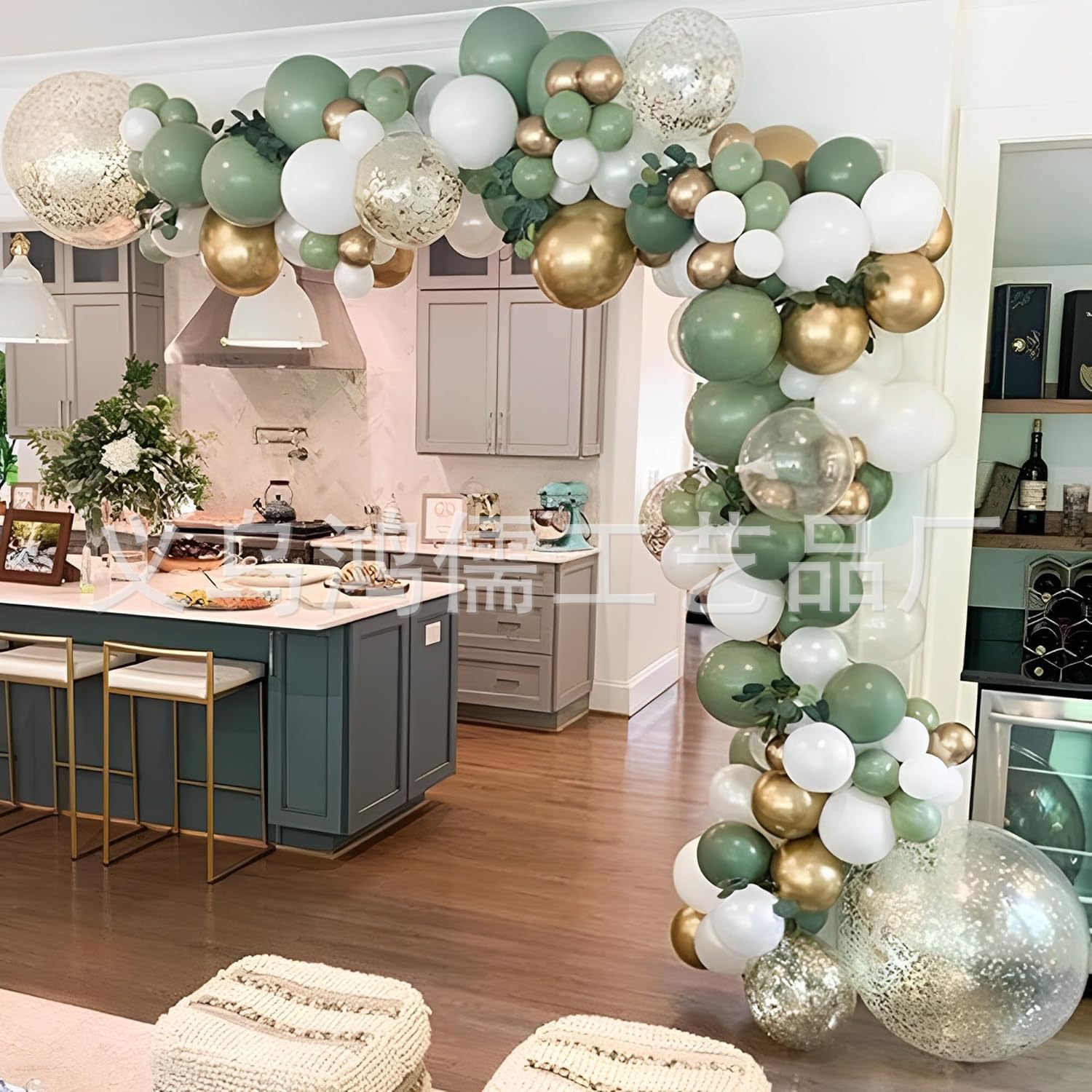 • 메탈릭 골드 빈티지 파우더 콩 녹색 모래 흰색 풍선 장식