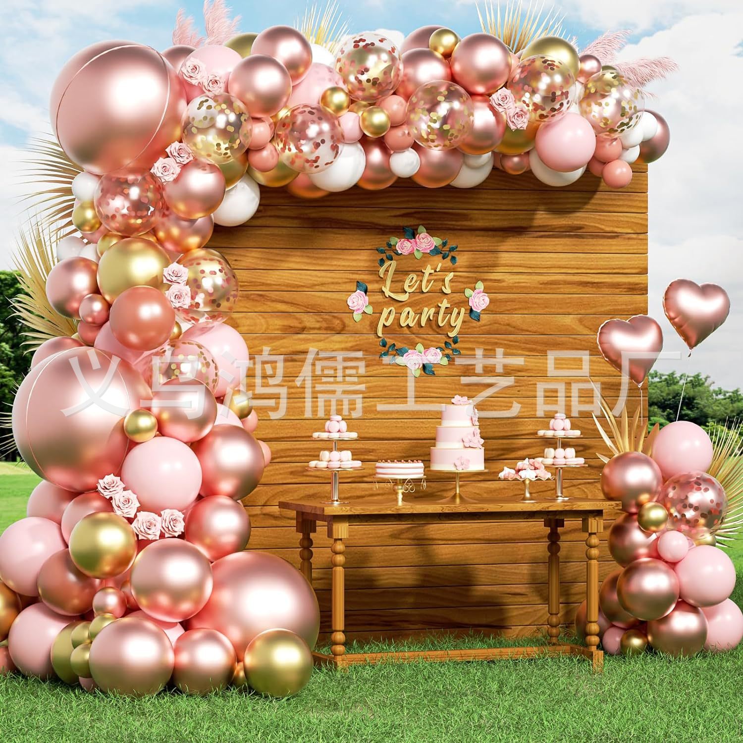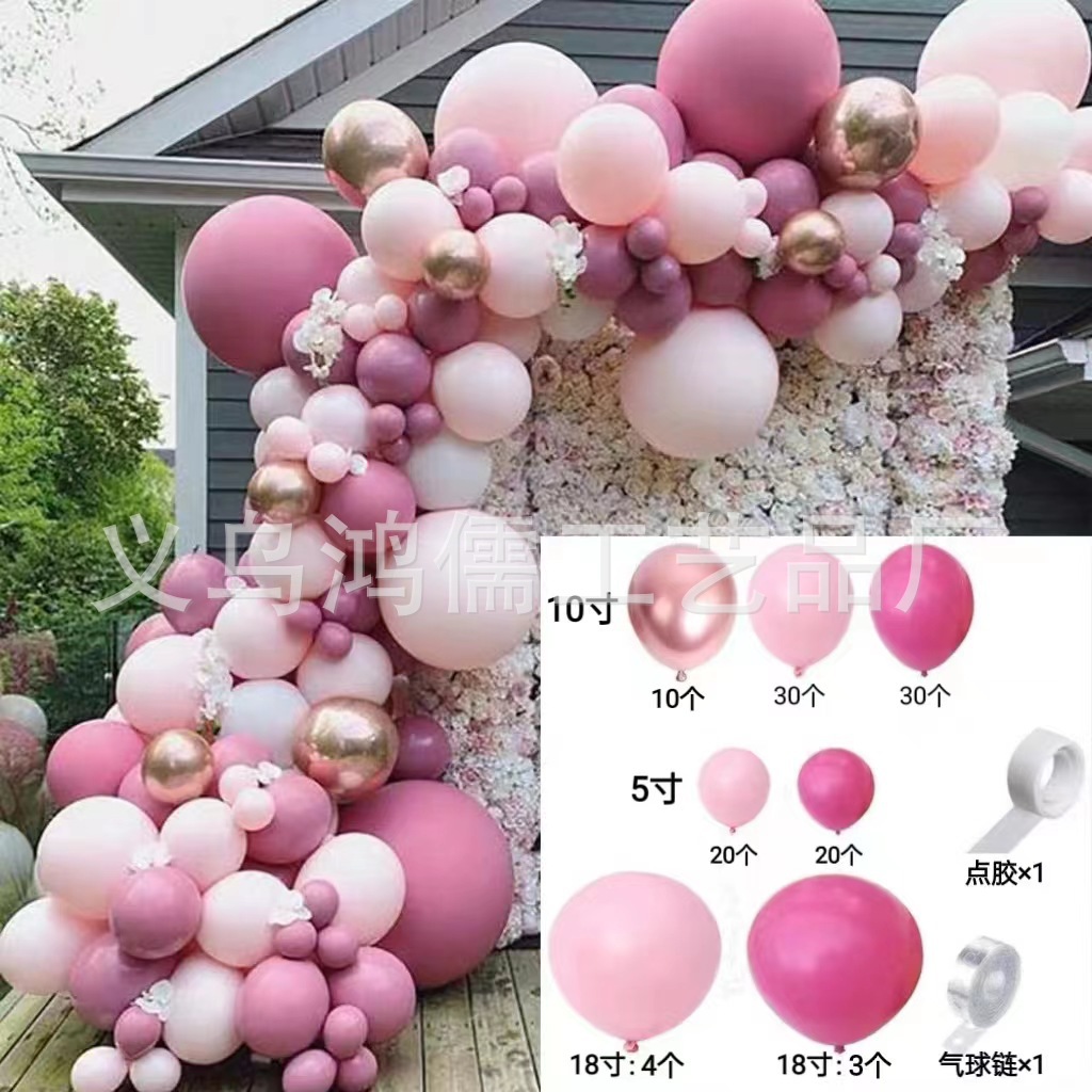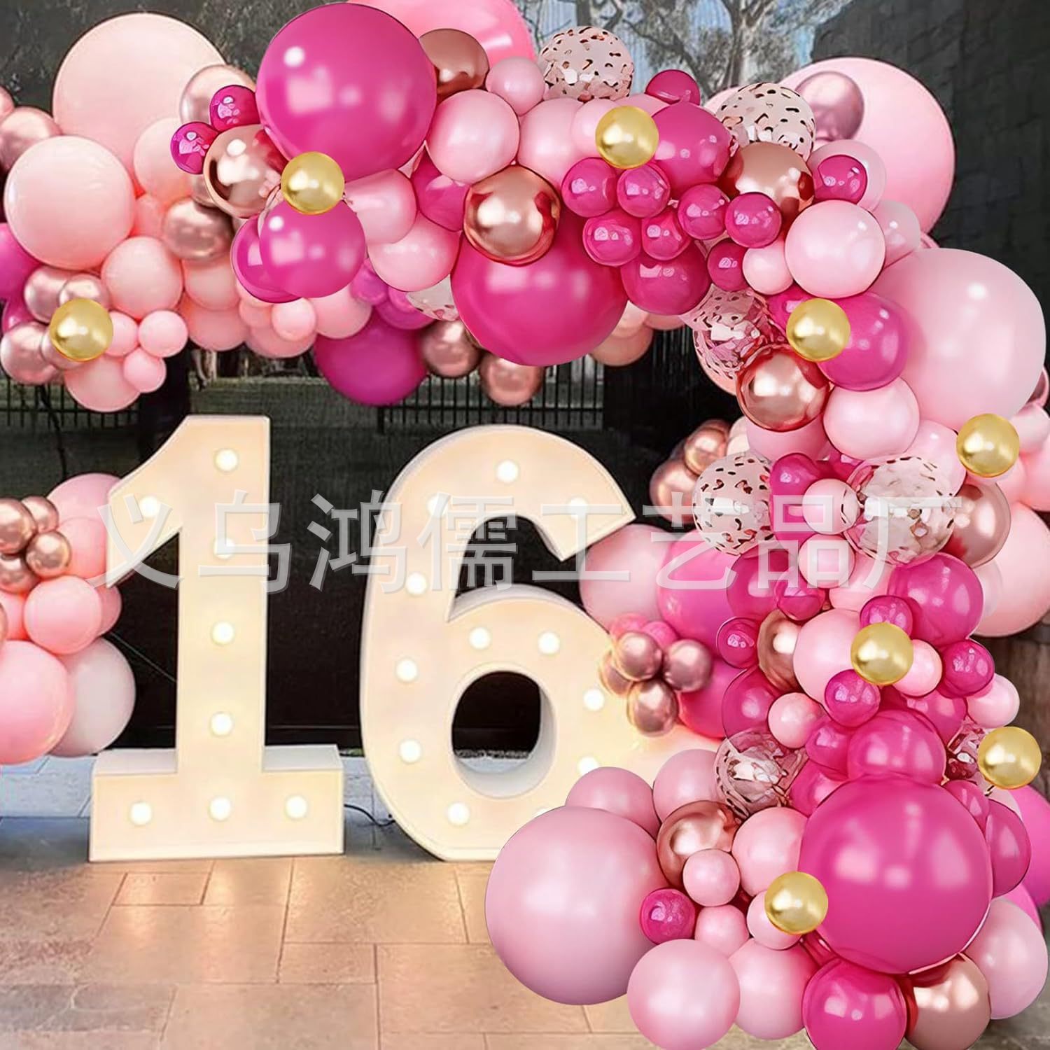 • 금속 파우더 로즈 레드 마카 파우더 신부 작별 여사 파티 소녀의 생일 준비 풍선 체인