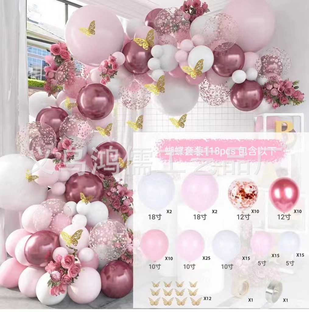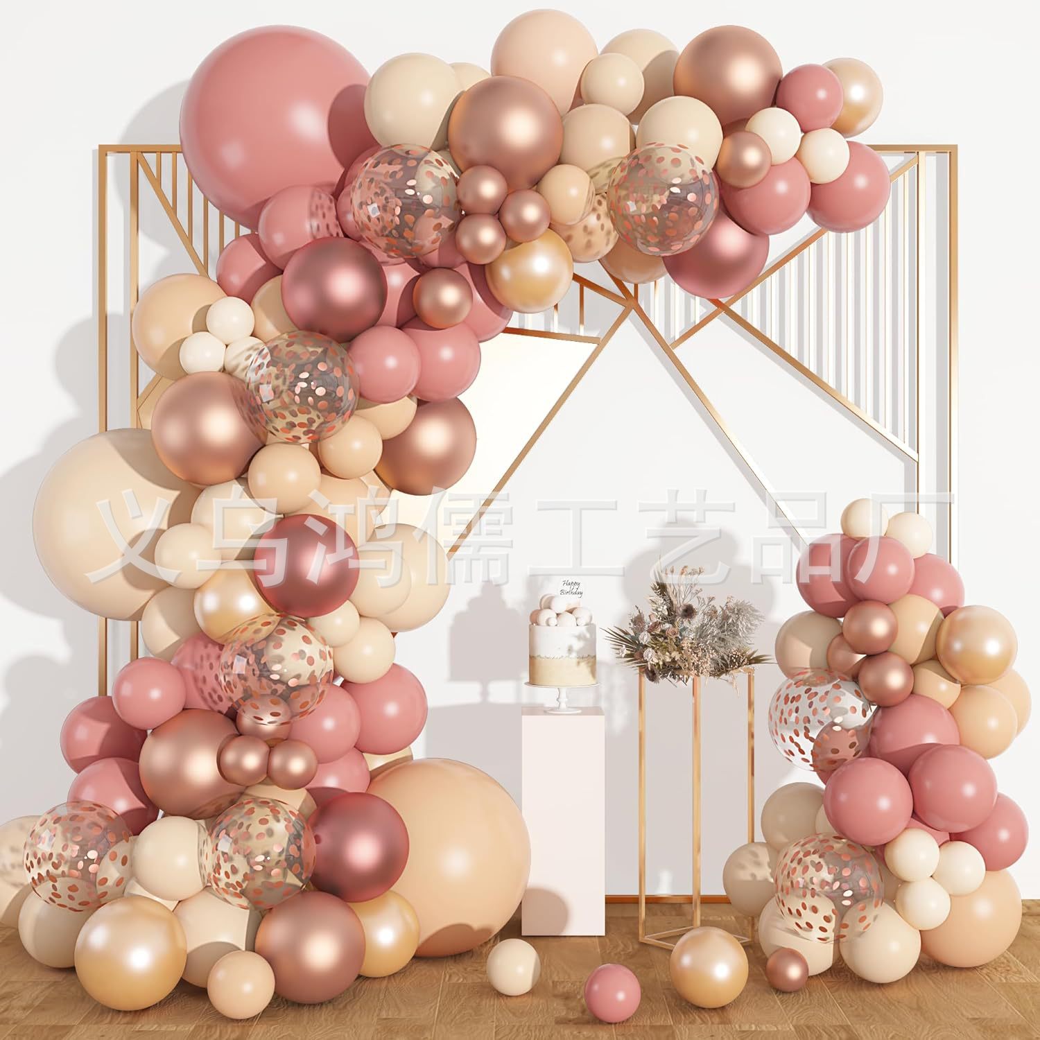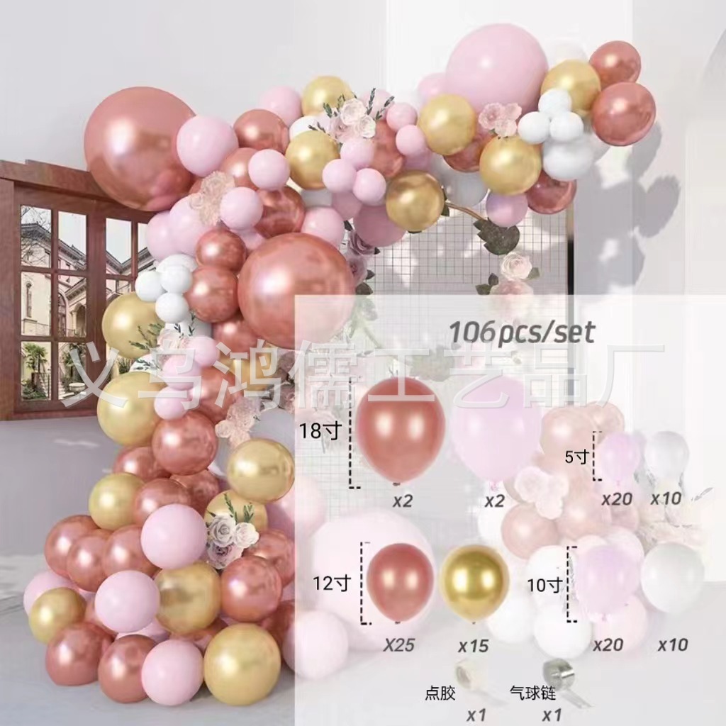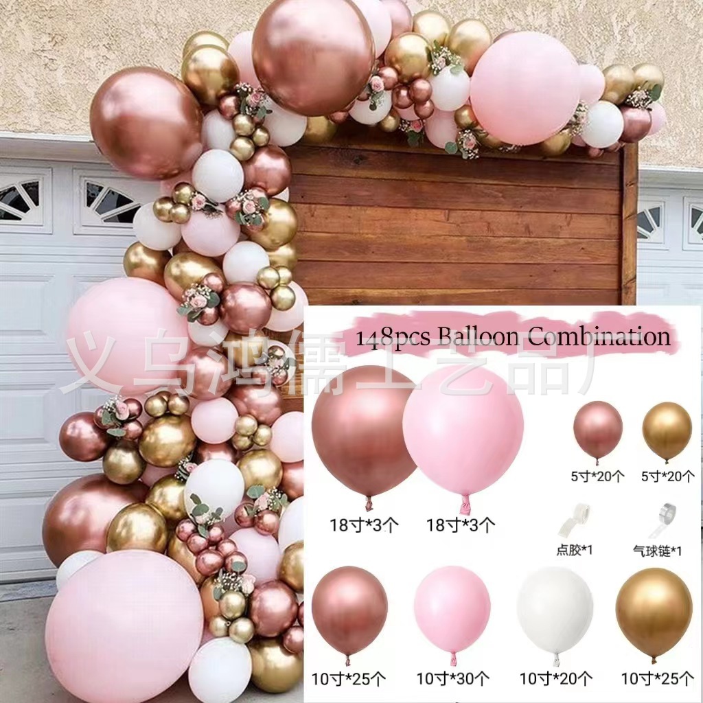 • 금속 파우더 로즈 레드 마카 파우더 신부 작별 여사 파티 소녀의 생일 준비 풍선 체인