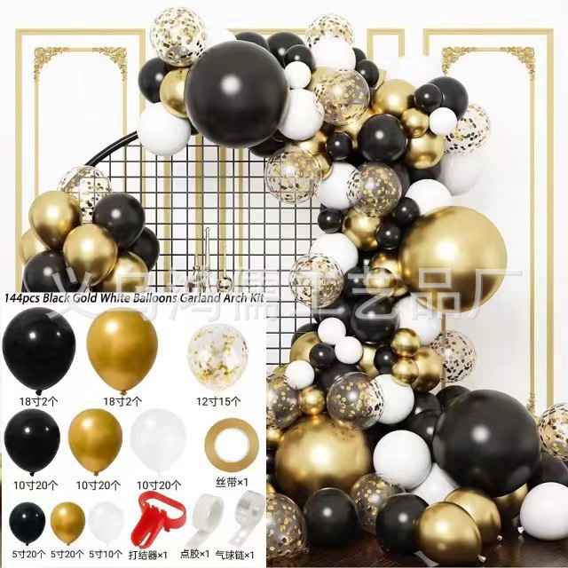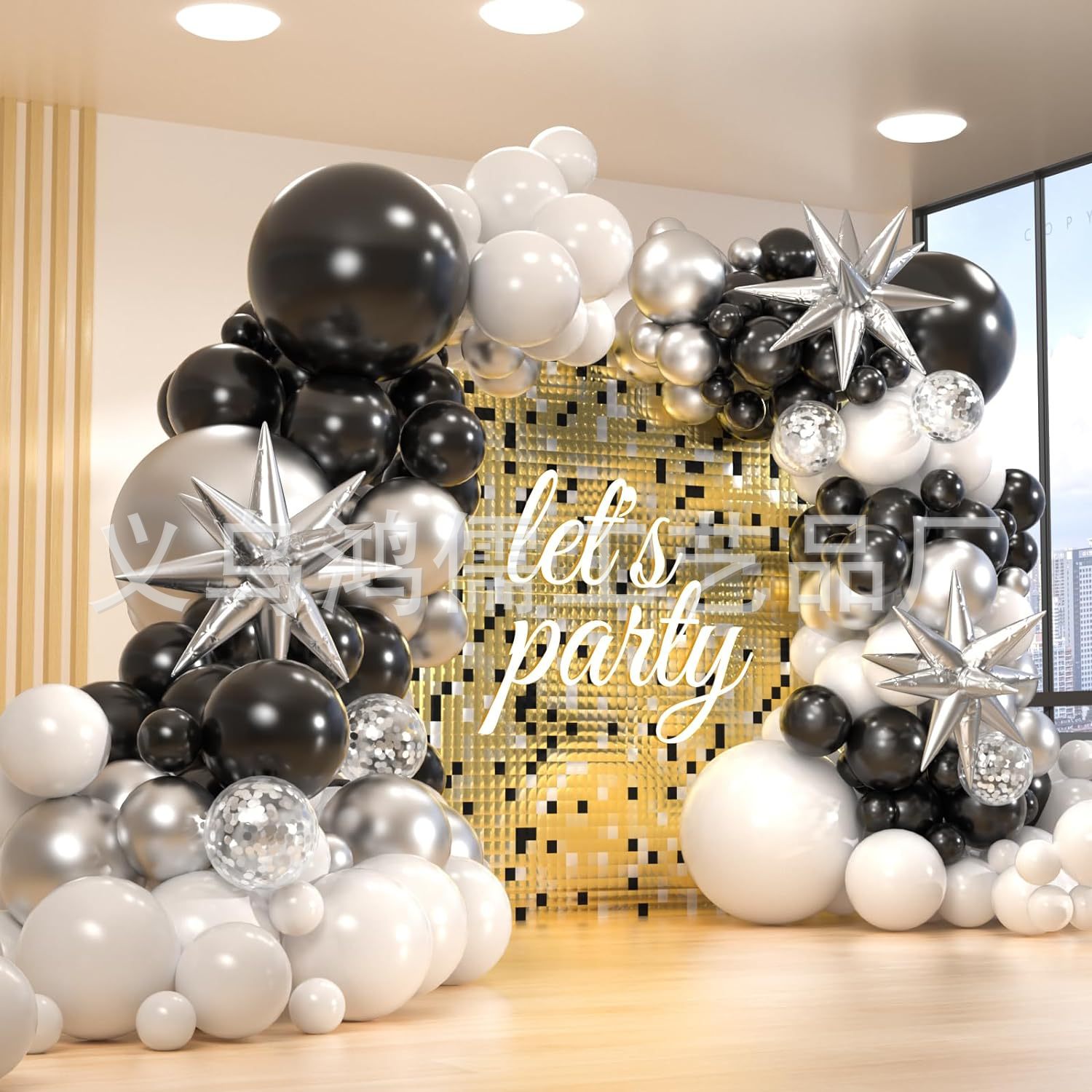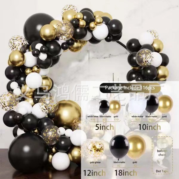 • 흑백 골드 생일 새해 시즌 풍선 체인