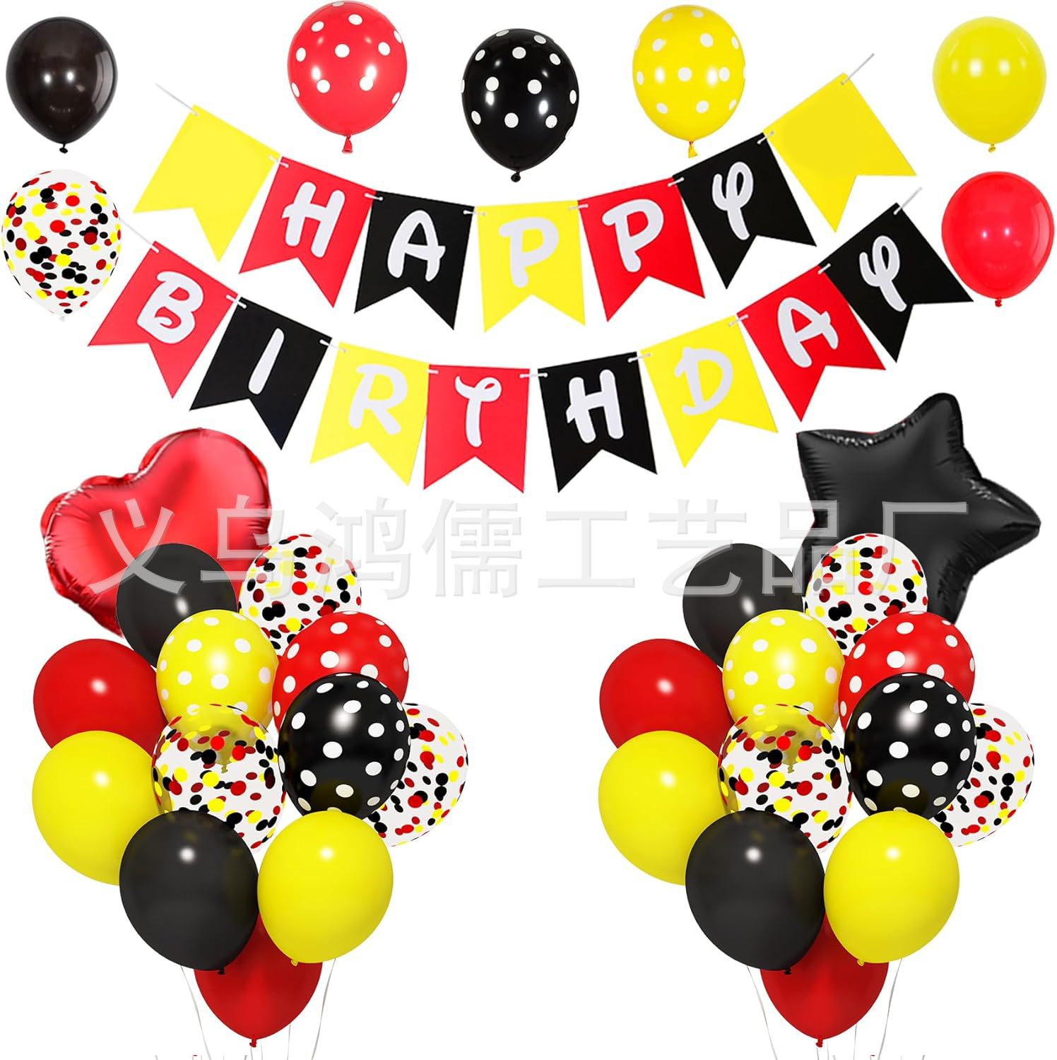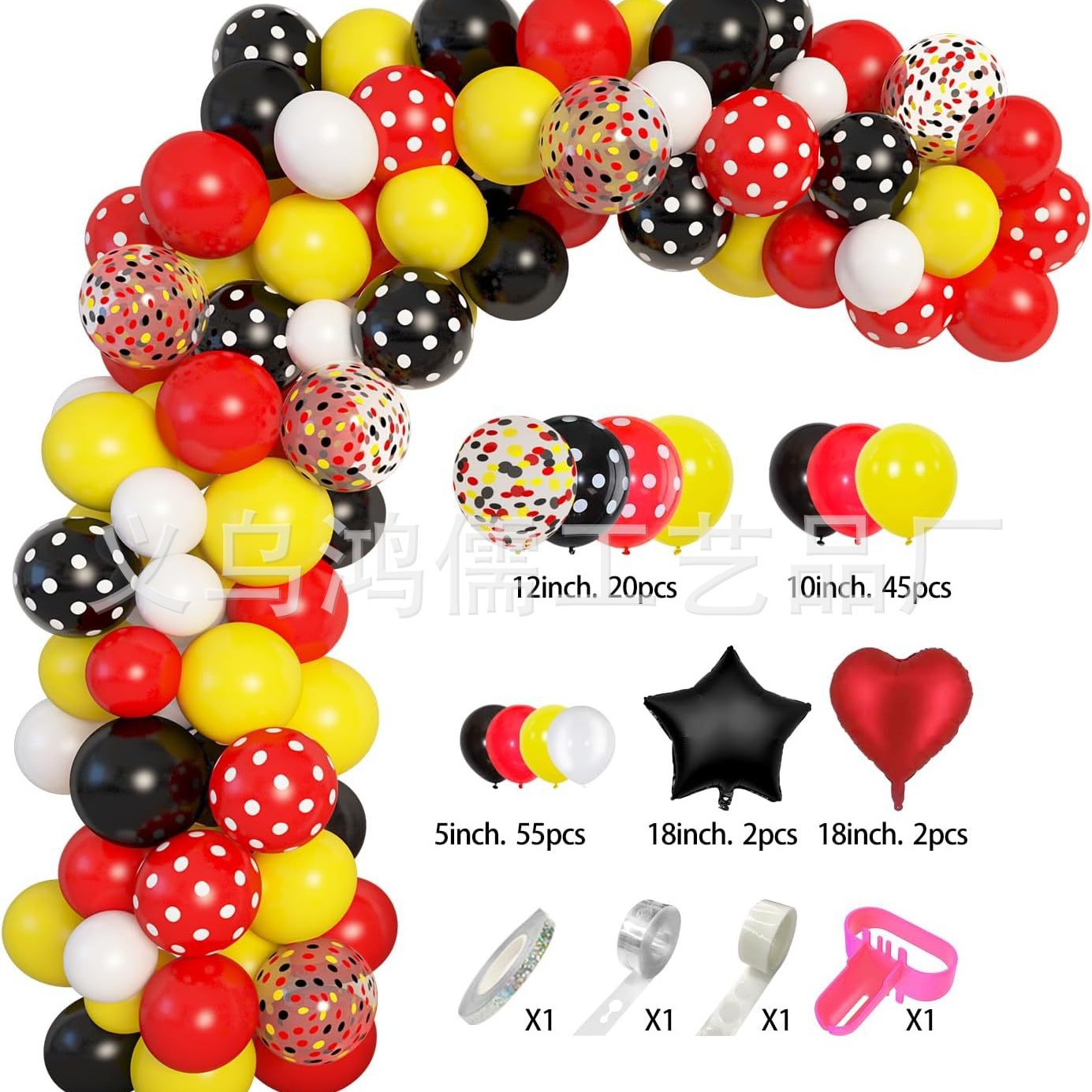 • 블랙 레드 옐로우 웨이브 도트 미키 마우스 생일 장식 풍선