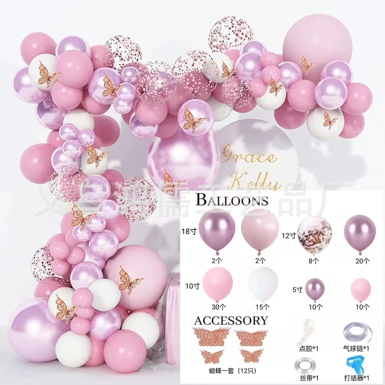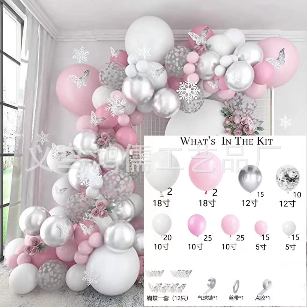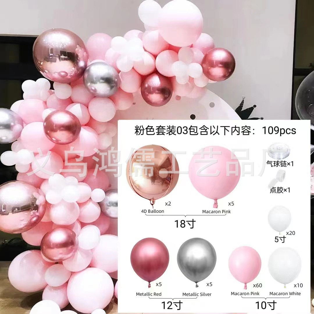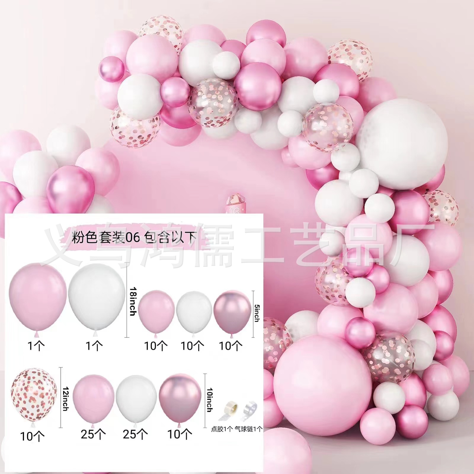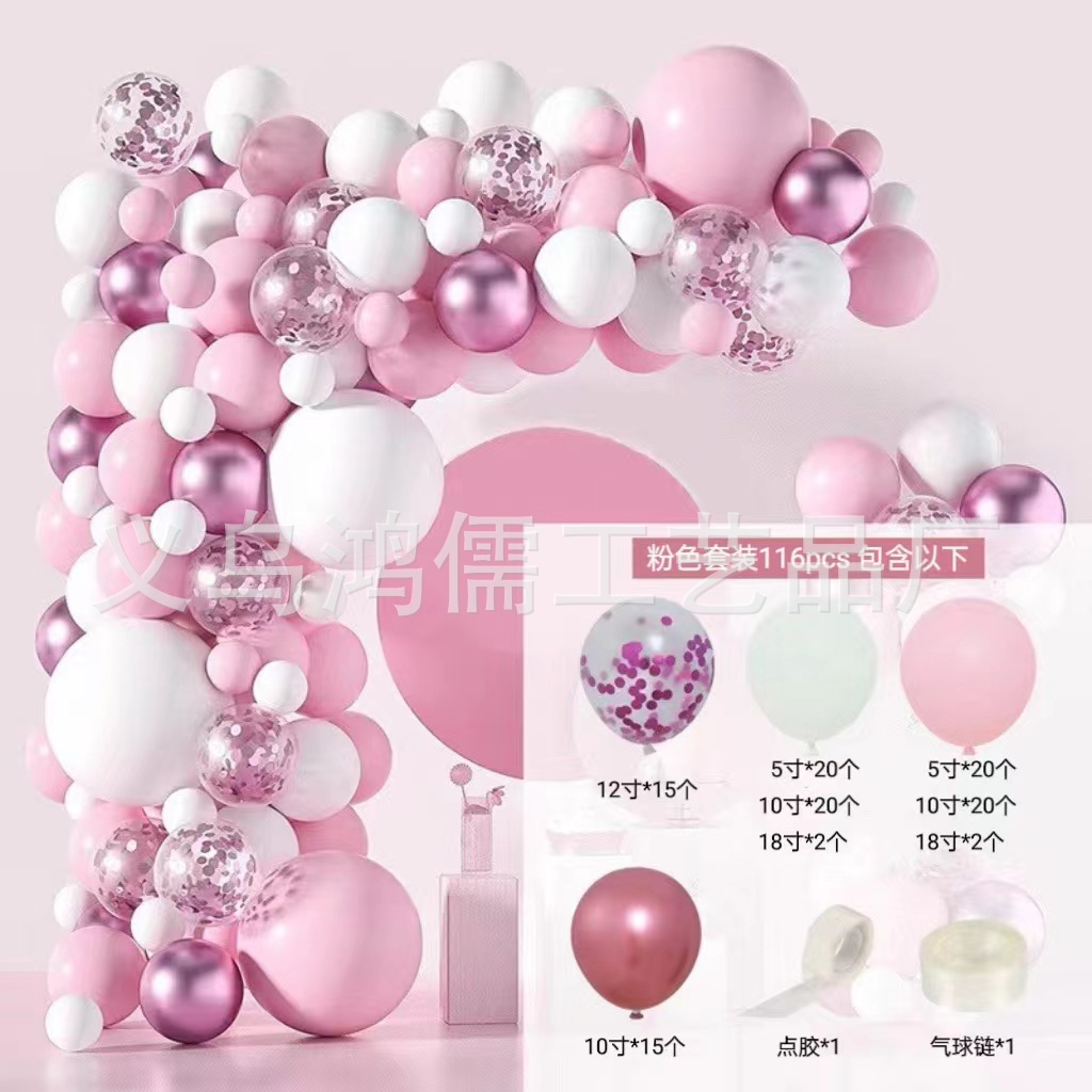 • 금속 핑크 화이트 풍선 체인 소녀의 생일 풍선 체인