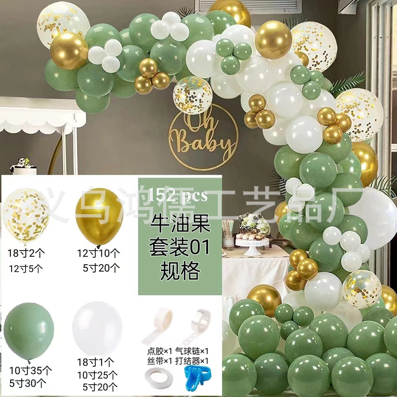 • 보헤미안 콩 녹색 (아보카도 그린 풍선) 152PCS
