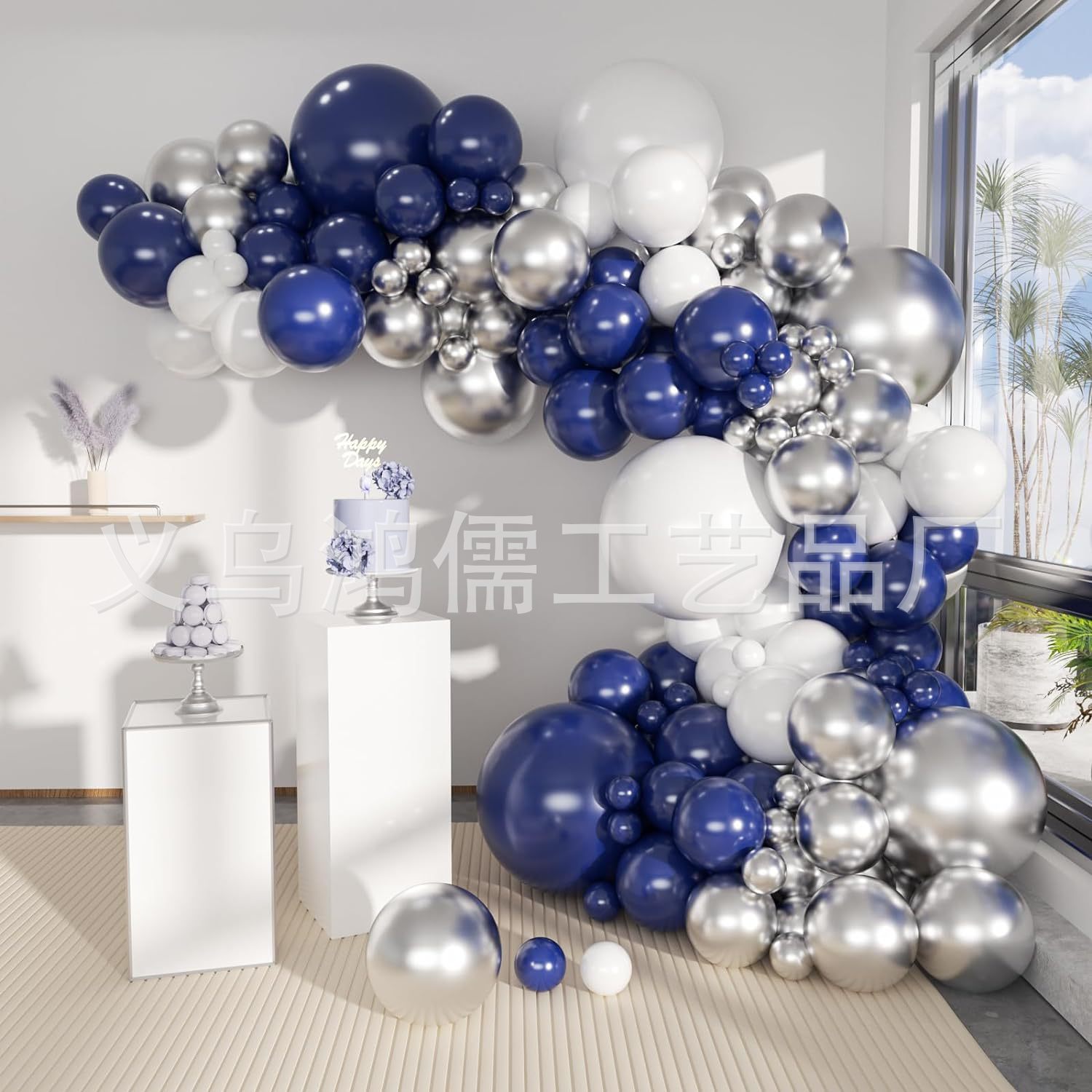 • 골든 블루 화이트 졸업 시즌 생일 샤워 의식 풍선 장식