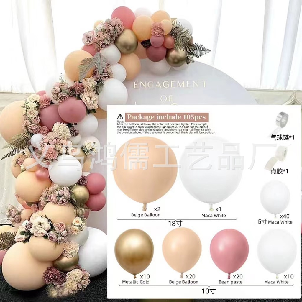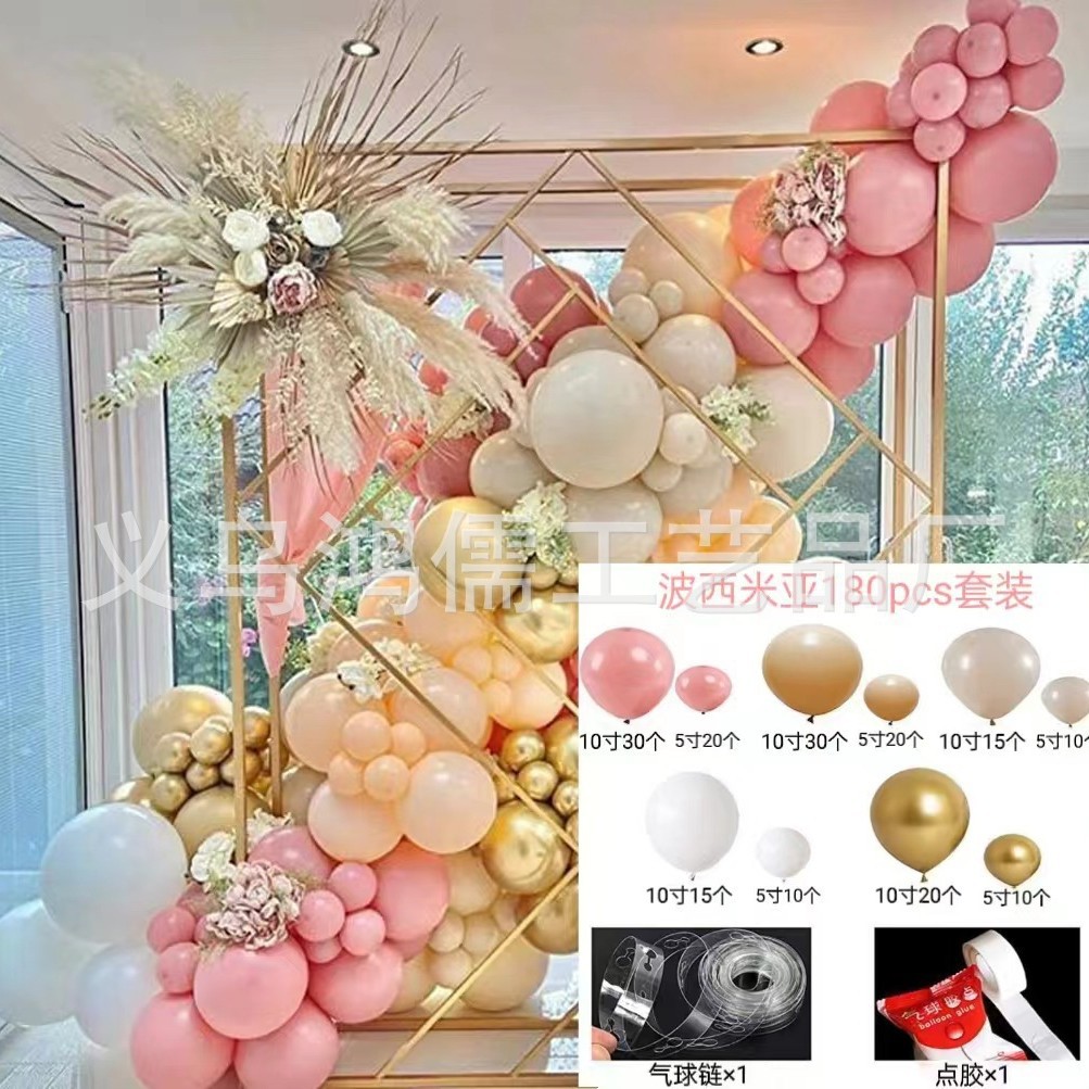 • 보헤미안 스타일 복고풍 핑크 스킨 컬러 화이트 메탈릭 골드 180PCS 풍선 체인