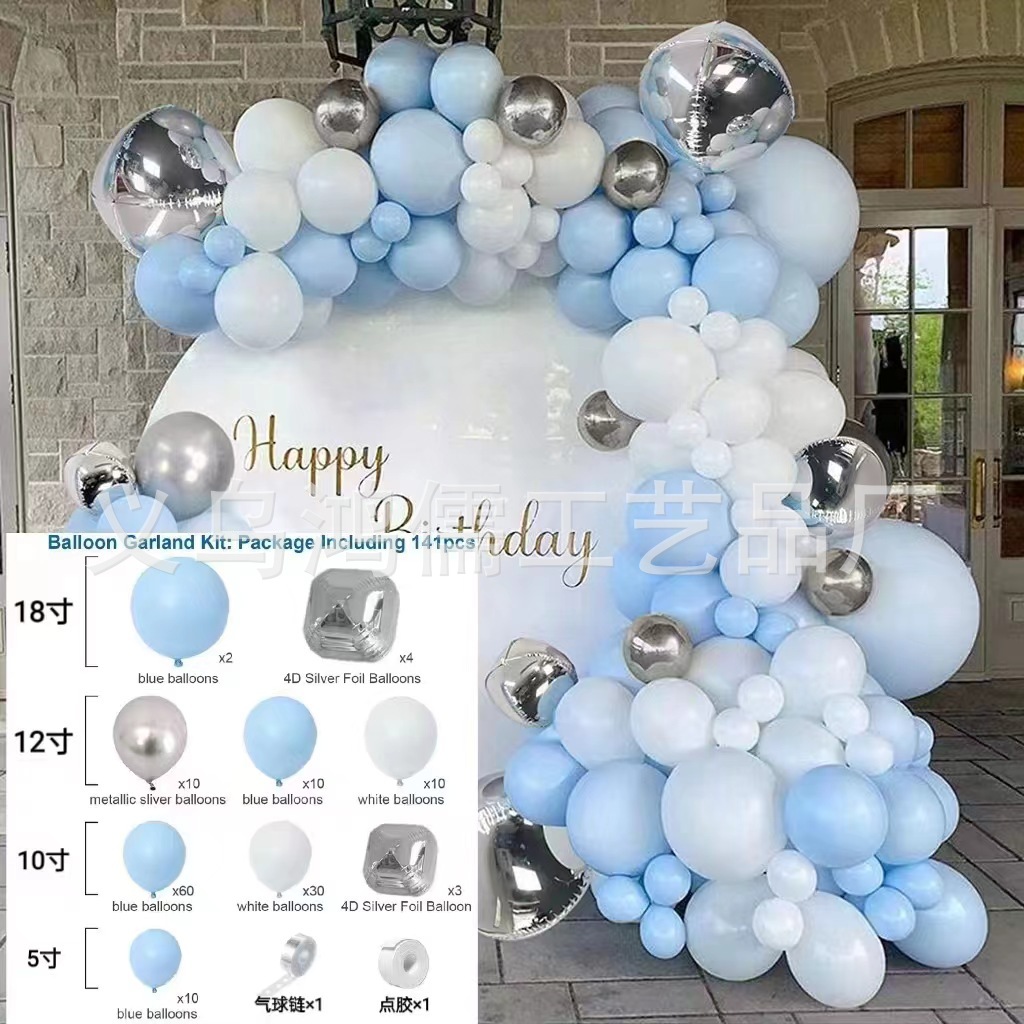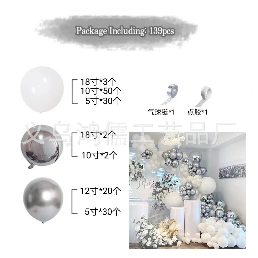 • 금속 실버 아기 침례 아기 생일 풍선 체인 139PCS